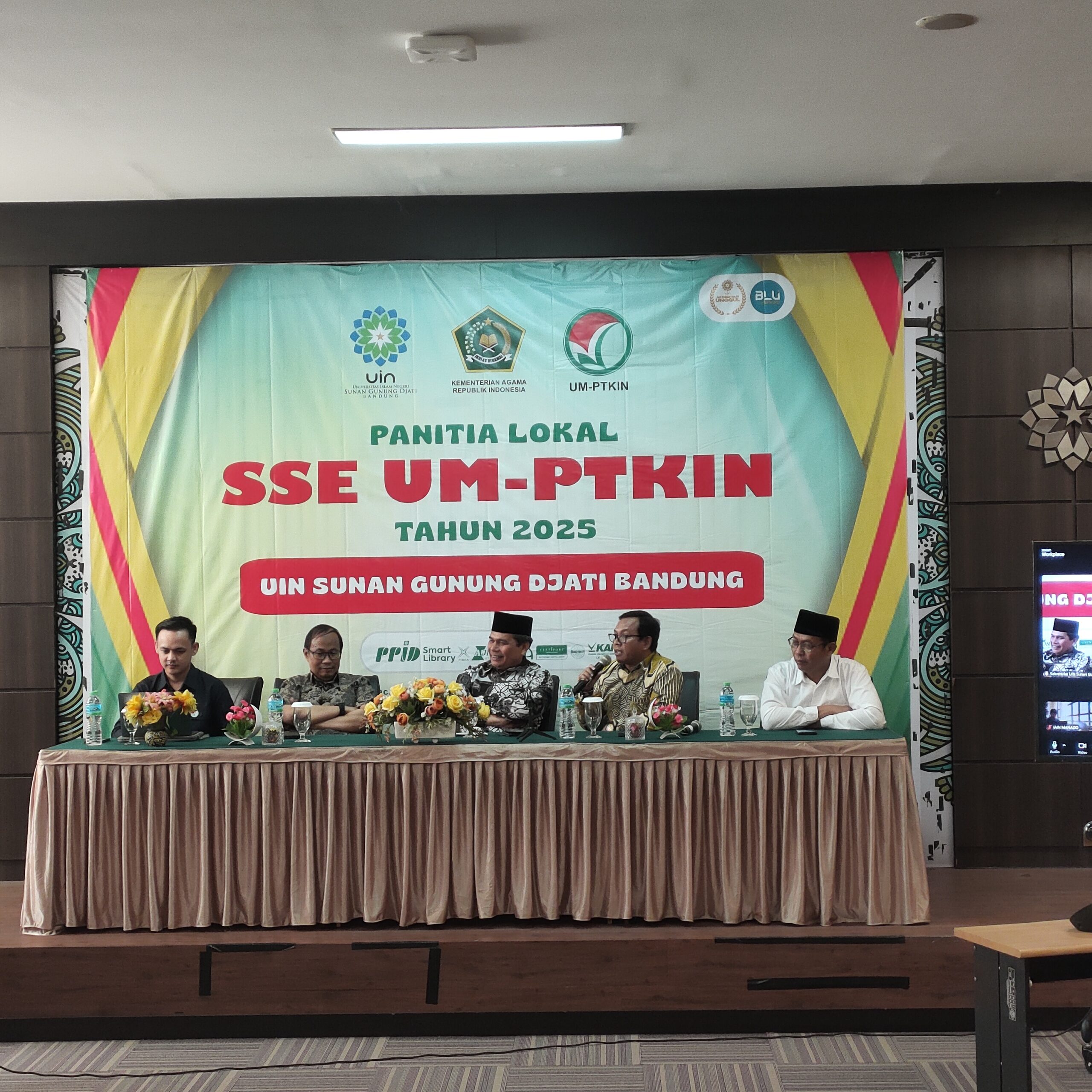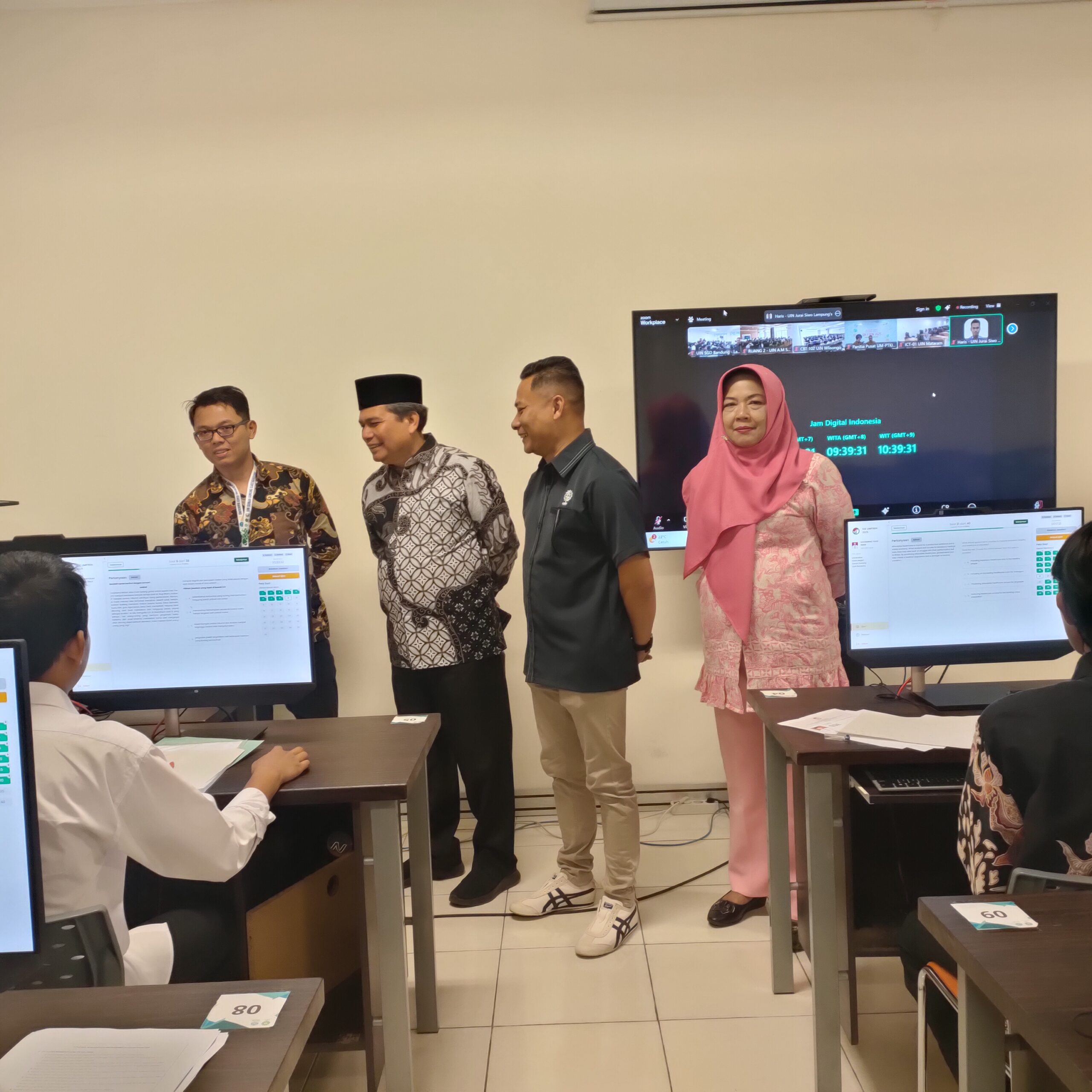 UINSGD.AC.ID (Humas) — Pelaksana Harian (Plh.) Wakil Rektor I UIN Sunan Gunung Djati Bandung, Prof. Dr. Husnul Qodim, M.A., didampingi Kepala Biro Administrasi Akademik, Kemahasiswaan, dan Kerjasama (A2KK), Dr. Nur Arifin, M.Pd., Kepala Pusat PMB, Dr. M. Erihadiana, M.Pd., menerima kunjungan monitoring pelaksanaan Seleksi Sistem Elektronik (SSE) Ujian Masuk Perguruan Tinggi Keagamaan Islam Negeri (UM-PTKIN) 2025. Kegiatan ini berlangsung di Laboratorium Pusat Teknologi Informasi dan Pangkalan Data (PTIPD) Lecture Hall Kampus I UIN Sunan Gunung Djati Bandung, Rabu (11/6/2025).