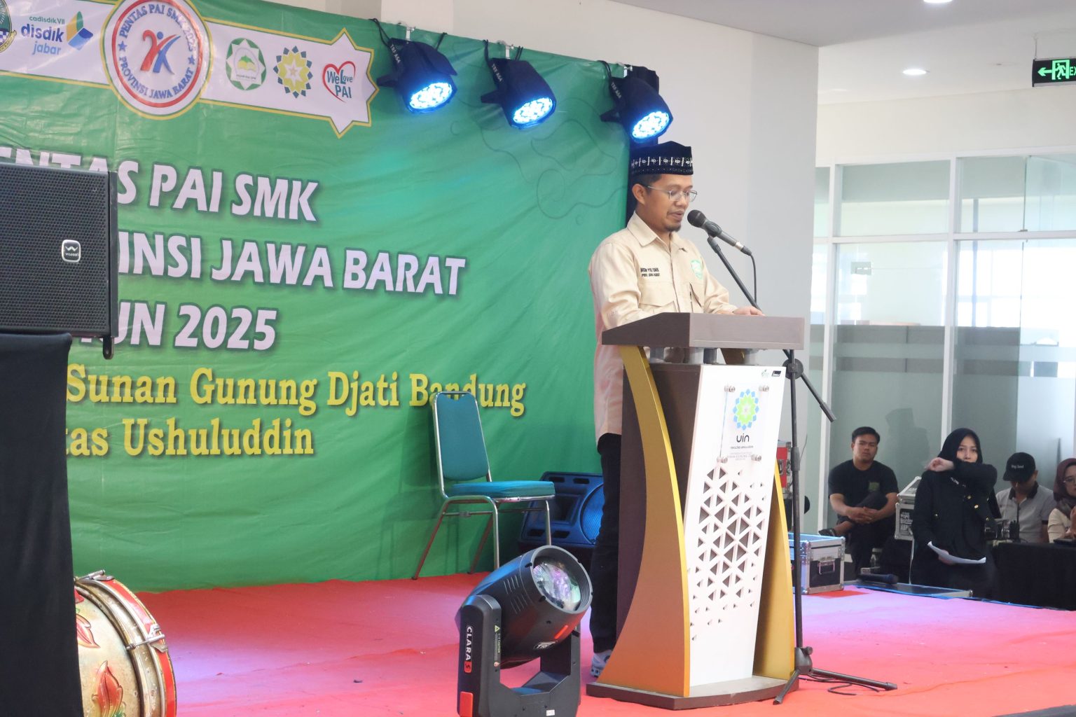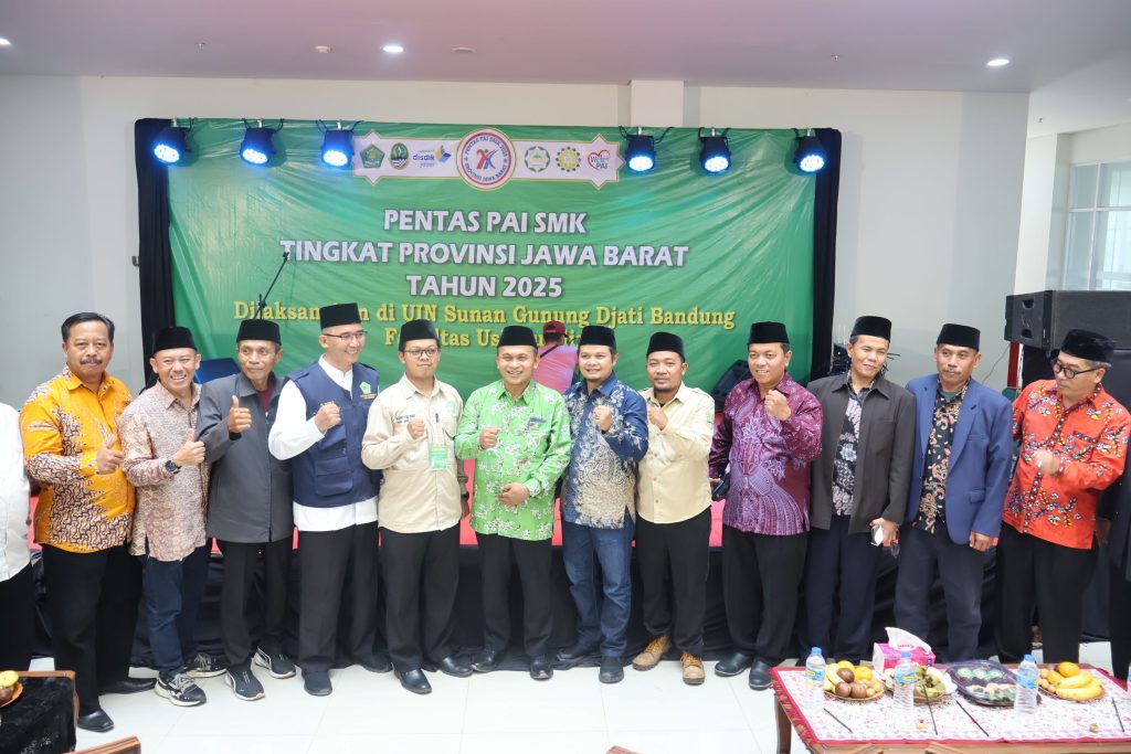 UINSGD.AC.ID (Humas) — Musyawarah Guru Mata Pelajaran (MGMP) Pendidikan Agama Islam (PAI) Sekolah Menengah Kejuruan (SMK) Jawa Barat bekerja sama dengan Fakultas Ushuluddin UIN Sunan Gunung Djati Bandung sukses menggelar Pekan Keterampilan dan Seni Pendidikan Agama Islam (Pentas PAI) SMK Tingkat Provinsi Jawa Barat. Kegiatan berlangsung di Kampus 2, Gedung Fakultas Ushuluddin, Sabtu (8/11/2025).