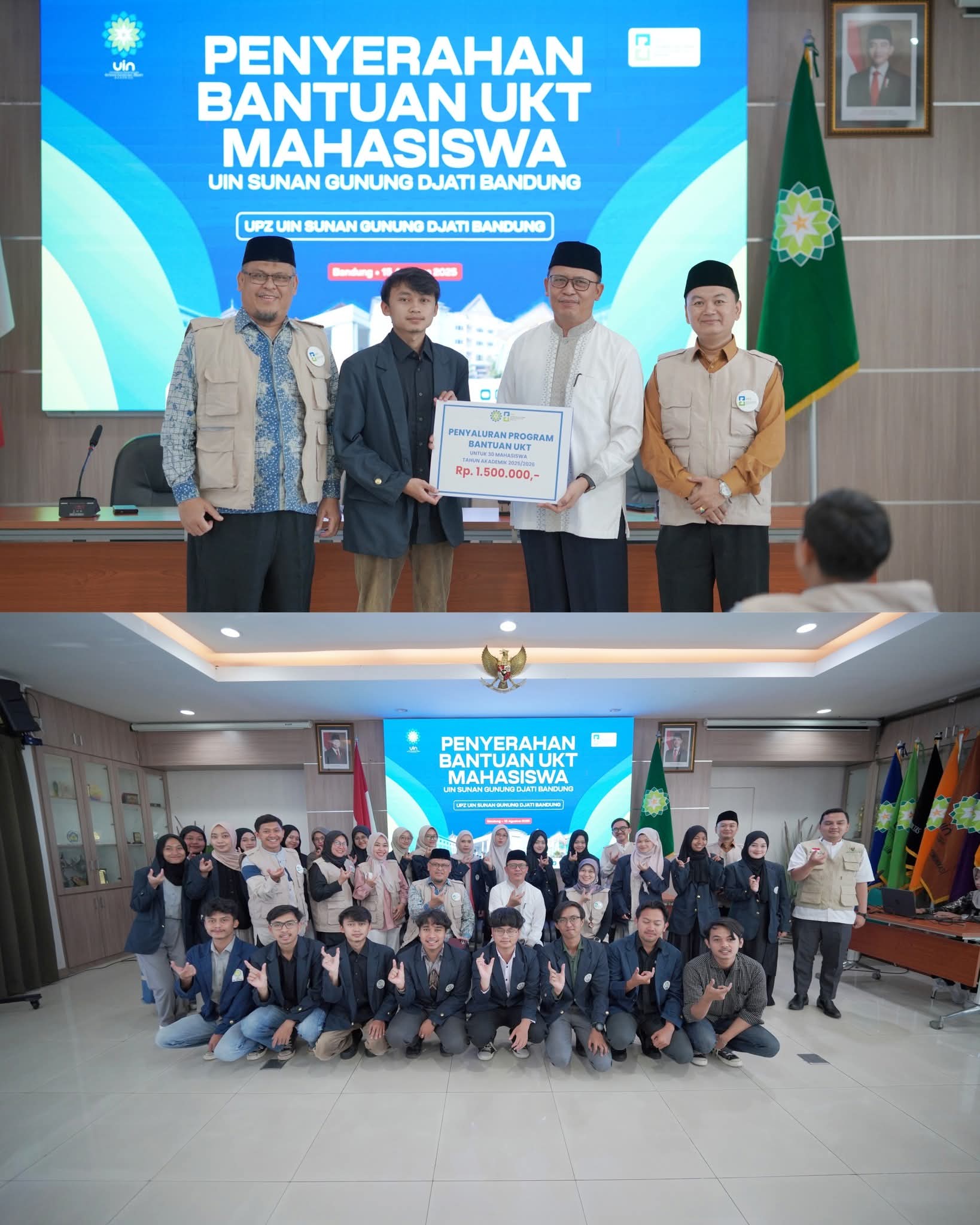 UINSGD.AC.ID (Humas) – UIN Sunan Gunung Djati Bandung melalui Unit Pengumpul Zakat (UPZ) kembali menegaskan komitmennya dalam mendukung keberlanjutan pendidikan. Hal ini diwujudkan dengan penyaluran Bantuan Uang Kuliah Tunggal (UKT) kepada 30 mahasiswa penerima manfaat, yang berlangsung di Gedung O. Djauharuddin AR, Jumat (15/8/2025).