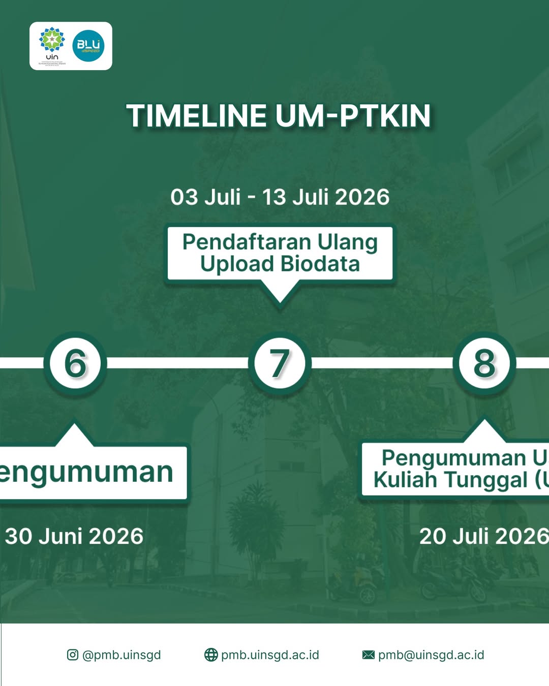 Melalui jalur UM-PTKIN, diharapkan lahir generasi unggul yang tidak hanya berprestasi secara akademik, tetapi juga memiliki integritas keislaman dan kontribusi nyata bagi masyarakat.