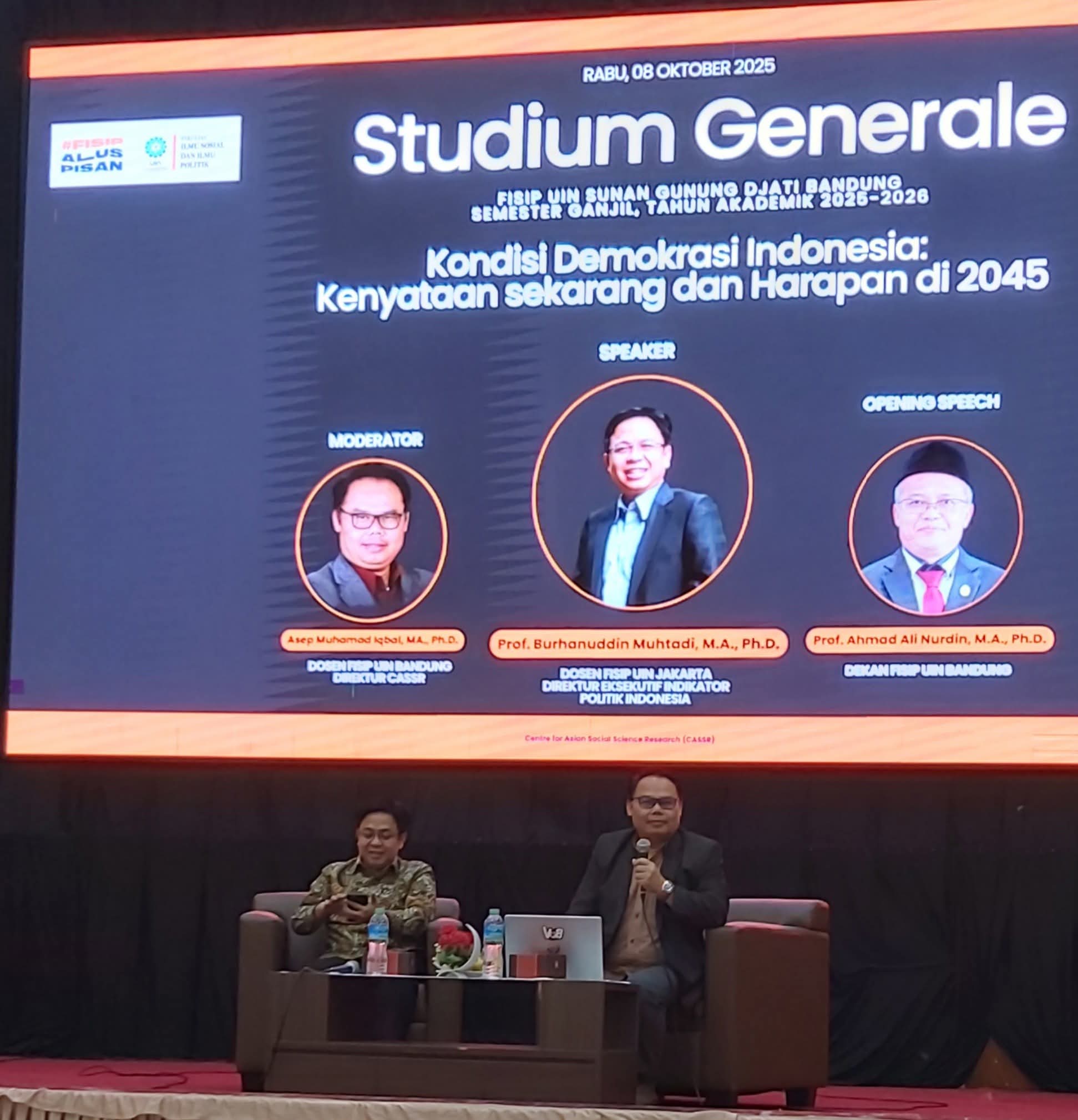 UINSGD.AC.ID (Humas) — Centre for Asian Social Science Research (CASSR) Fakultas Ilmu Sosial dan Ilmu Politik (FISIP) UIN Sunan Gunung Djati Bandung menggelar Studium Generale Semester Ganjil Tahun Akademik 2025-2026 di Aula Anwar Musaddad, Rabu, (8/10/2025).