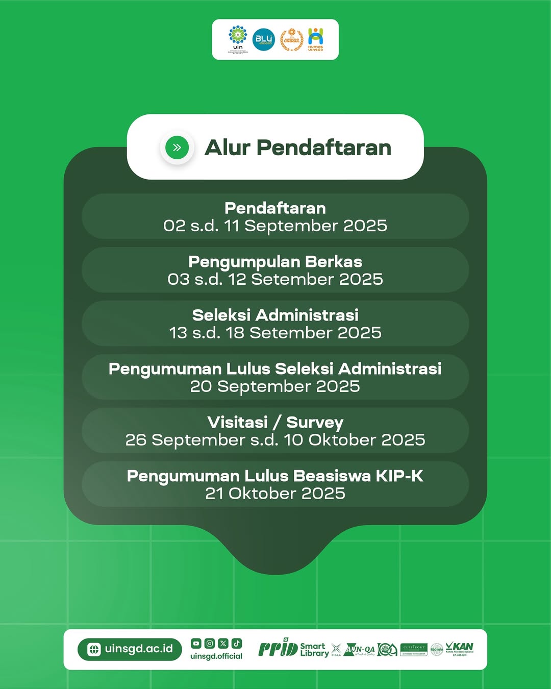 – Pengumuman Lulus Penerima Beasiswa KIP-K pada tanggal 21 Oktober 2025.