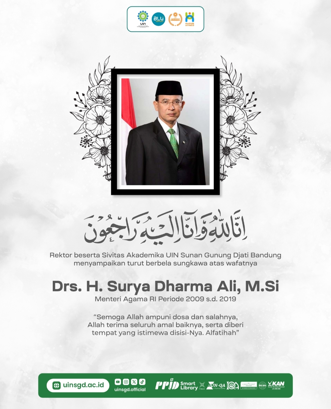 UINSGD.AC.ID (Humas) — Keluarga besar Universitas Islam Negeri (UIN) Sunan Gunung Djati Bandung menyampaikan belasungkawa yang mendalam atas wafatnya: