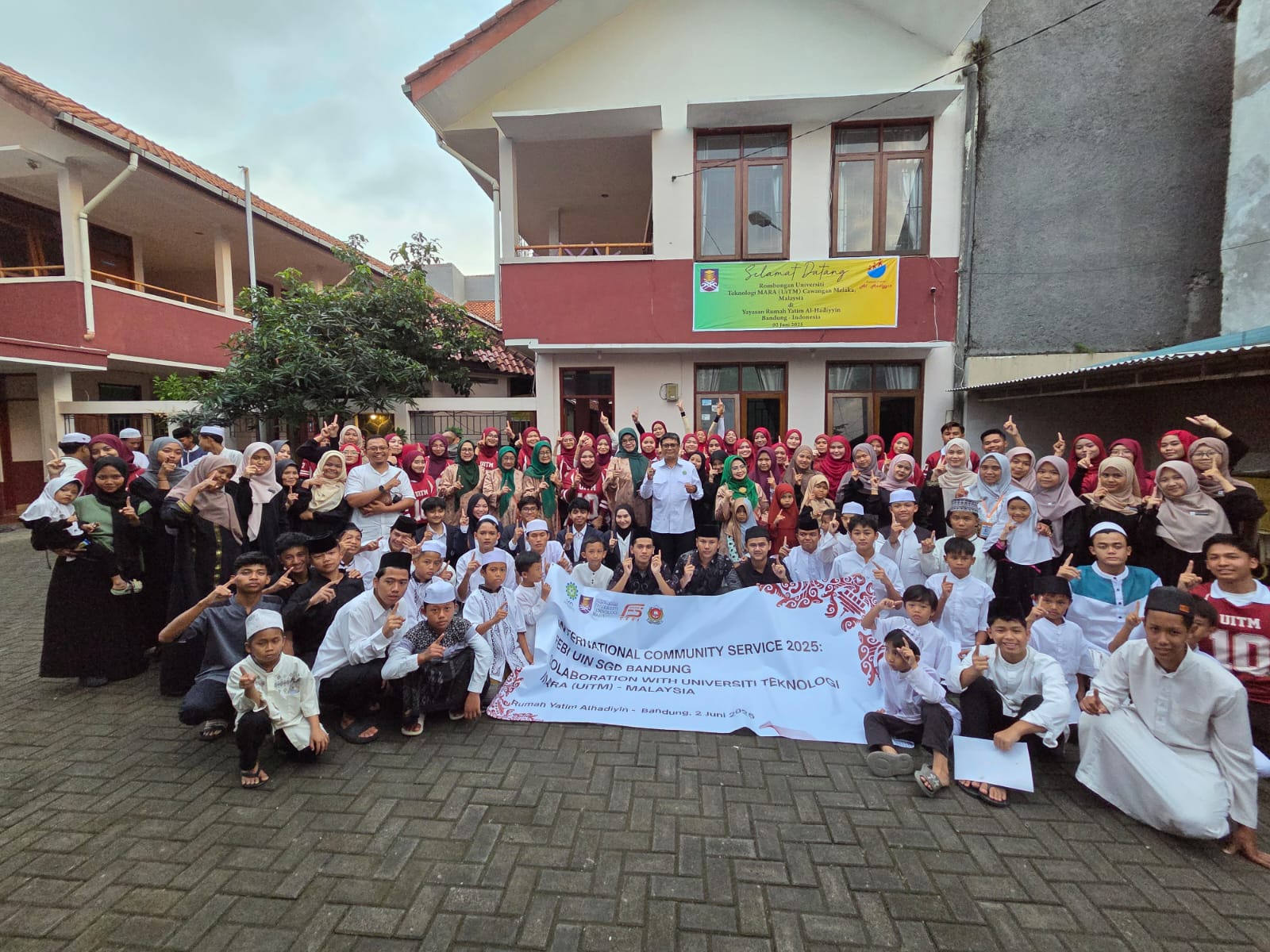 UINSGD.AC.ID (Humas) — Fakultas Ekonomi dan Bisnis Islam (FEBI) UIN Sunan Gunung Djati Bandung bersama Faculty of Business and Management Universiti Teknologi MARA (UiTM) Malaysia menggelar International Community Service atau Pengabdian kepada Masyarakat (PKM) di dua lokasi berbeda: Panti Asuhan Al-Hadiyyin dan Pesantren Tuna Netra Sam’an Darussudhur, Bandung, Senin (2/6/2025).