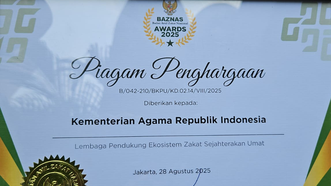 UINSGD.AC.ID (Humas) — Kementerian Agama didaulat sebagai Lembaga Pendukung Ekosistem Zakat Sejahterakan Umat. Penghargaan ini diberikan oleh Badan Amil Zakat Nasional (Baznas) pada Baznas Award 2025.