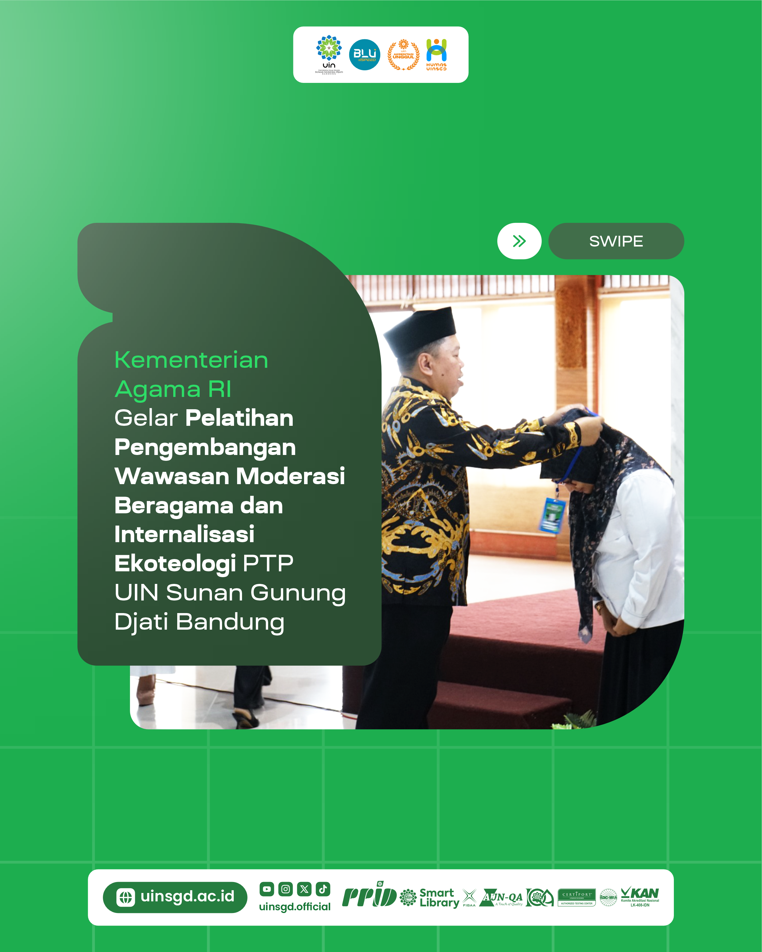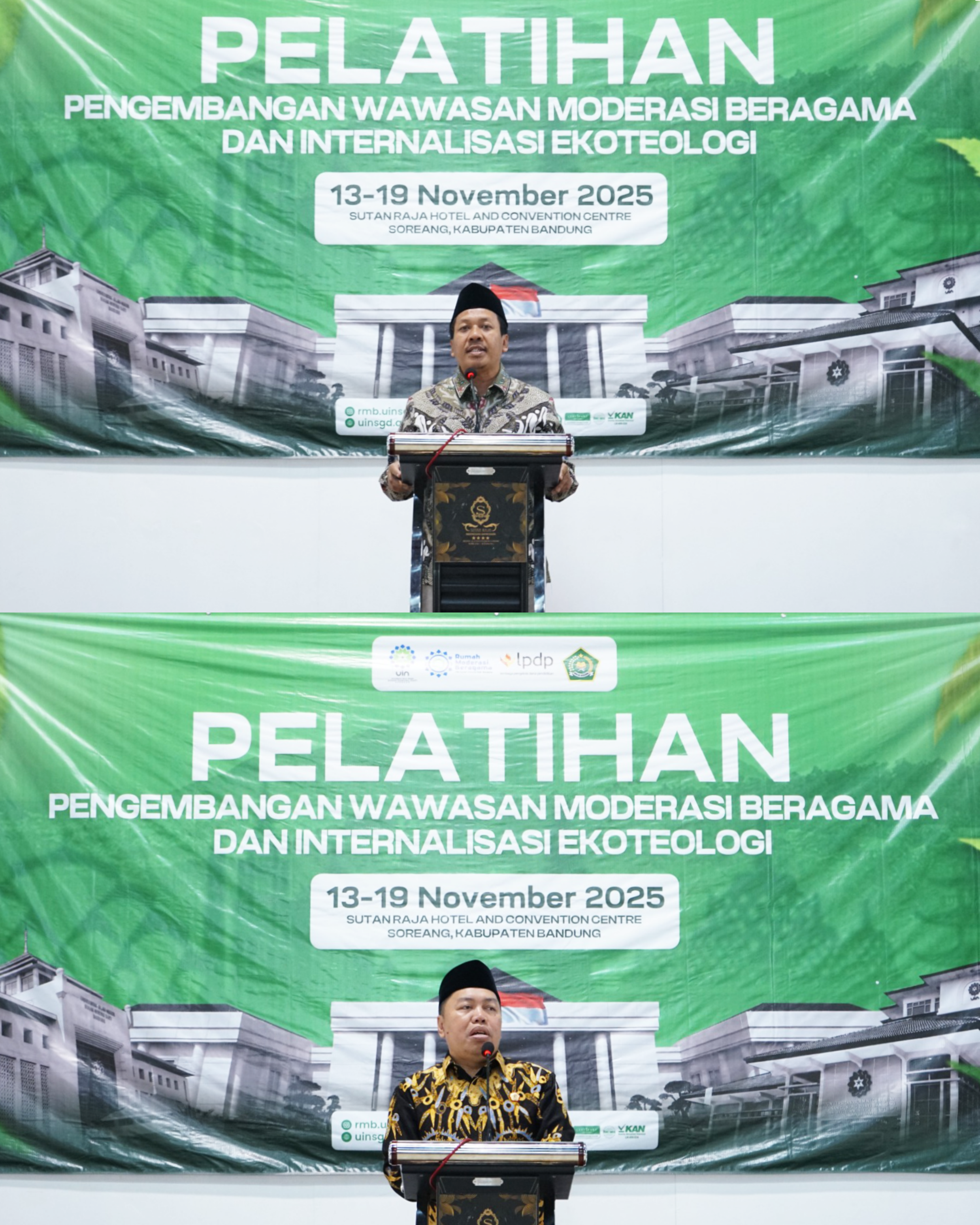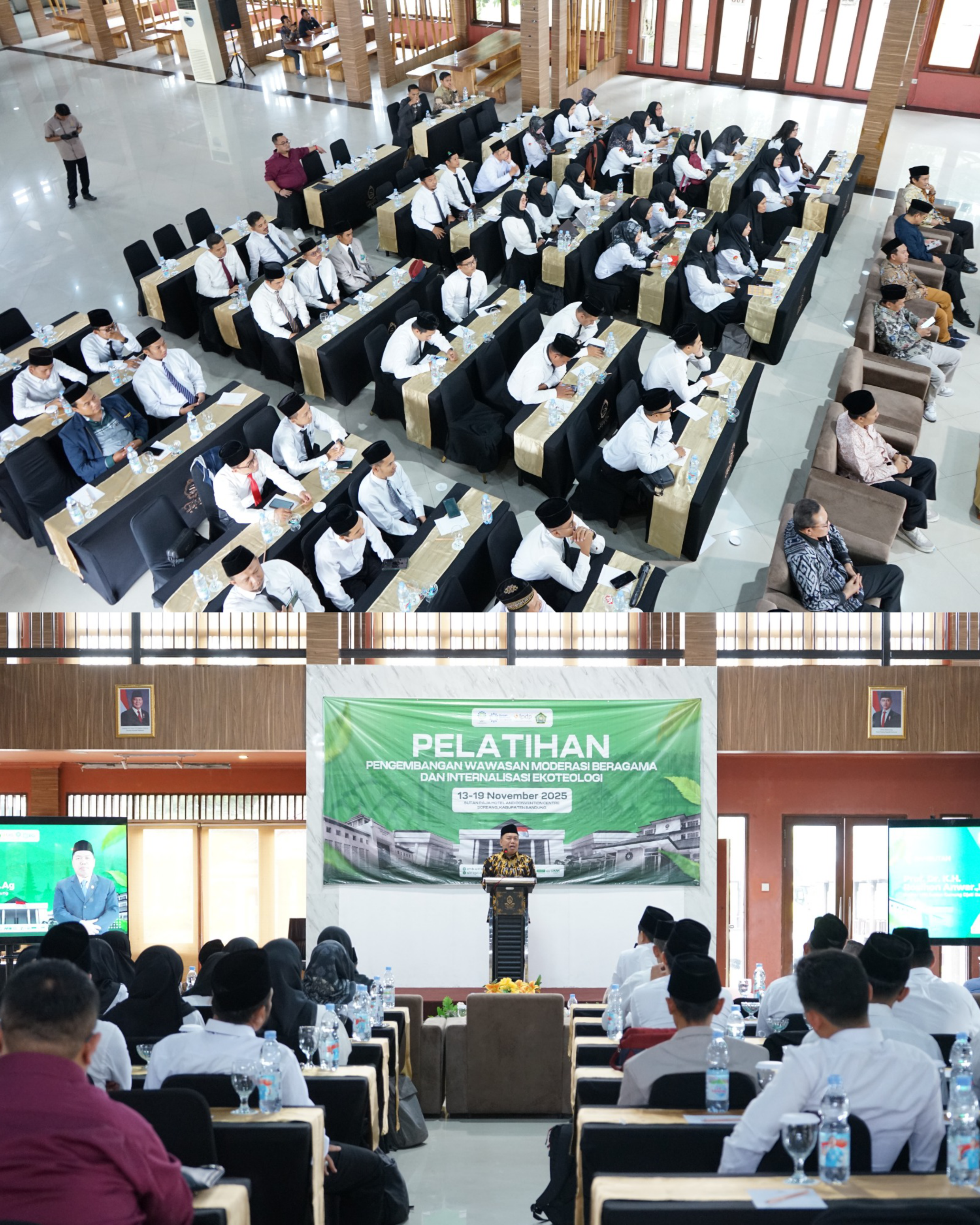 UINSGD.AC.ID (Humas) — Kementrian Agama RI bekerja sama dengan Universitas Islam Negeri (UIN) Sunan Gunung Djati Bandung menggelar Pelatihan Pengembangan Wawasan Moderasi Beragama dan Internalisasi Ekoteologi dari tanggal 13–19 November 2025, bertempat di Hotel Sutan Raja, Soreang, Kabupaten Bandung.