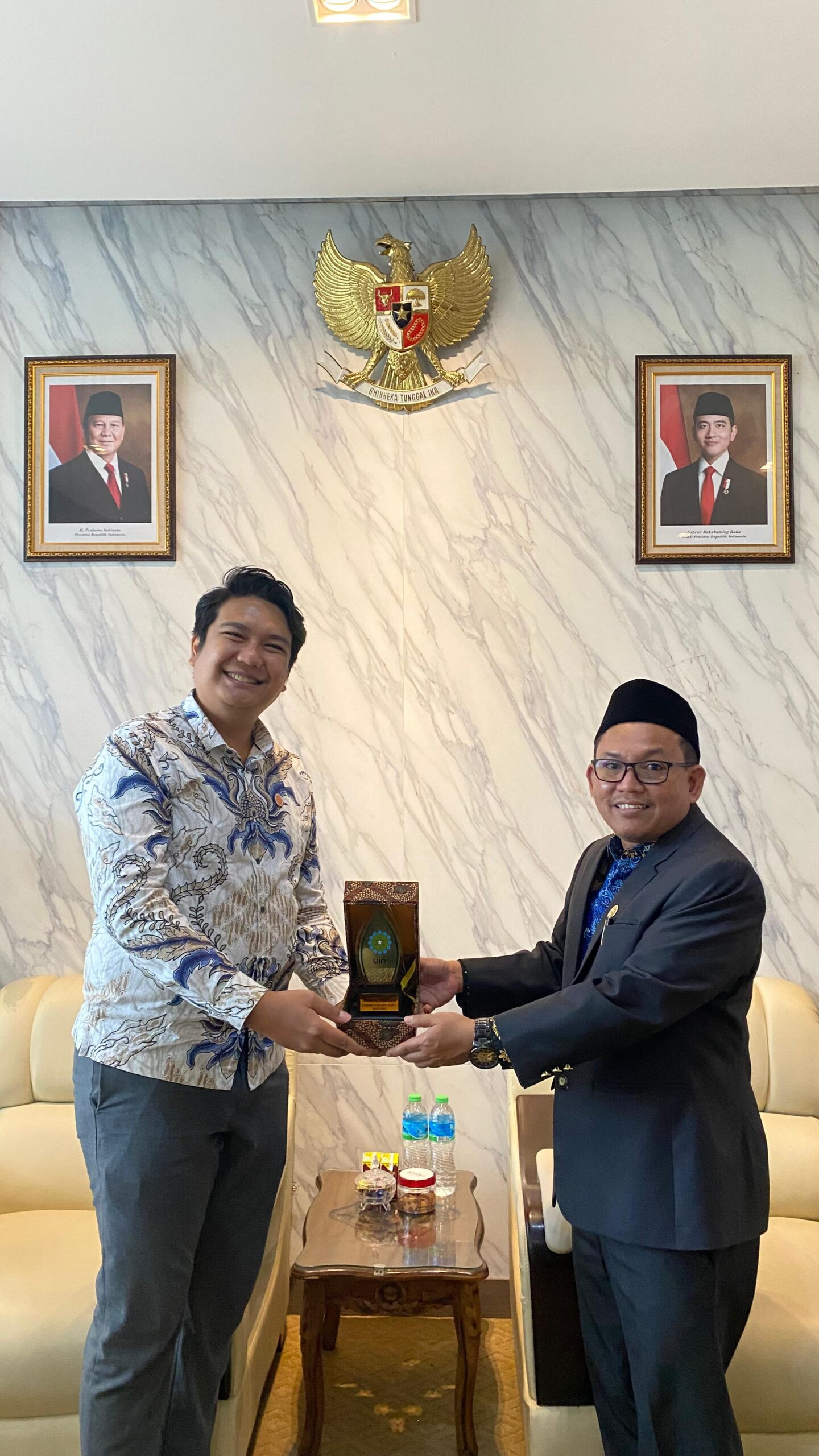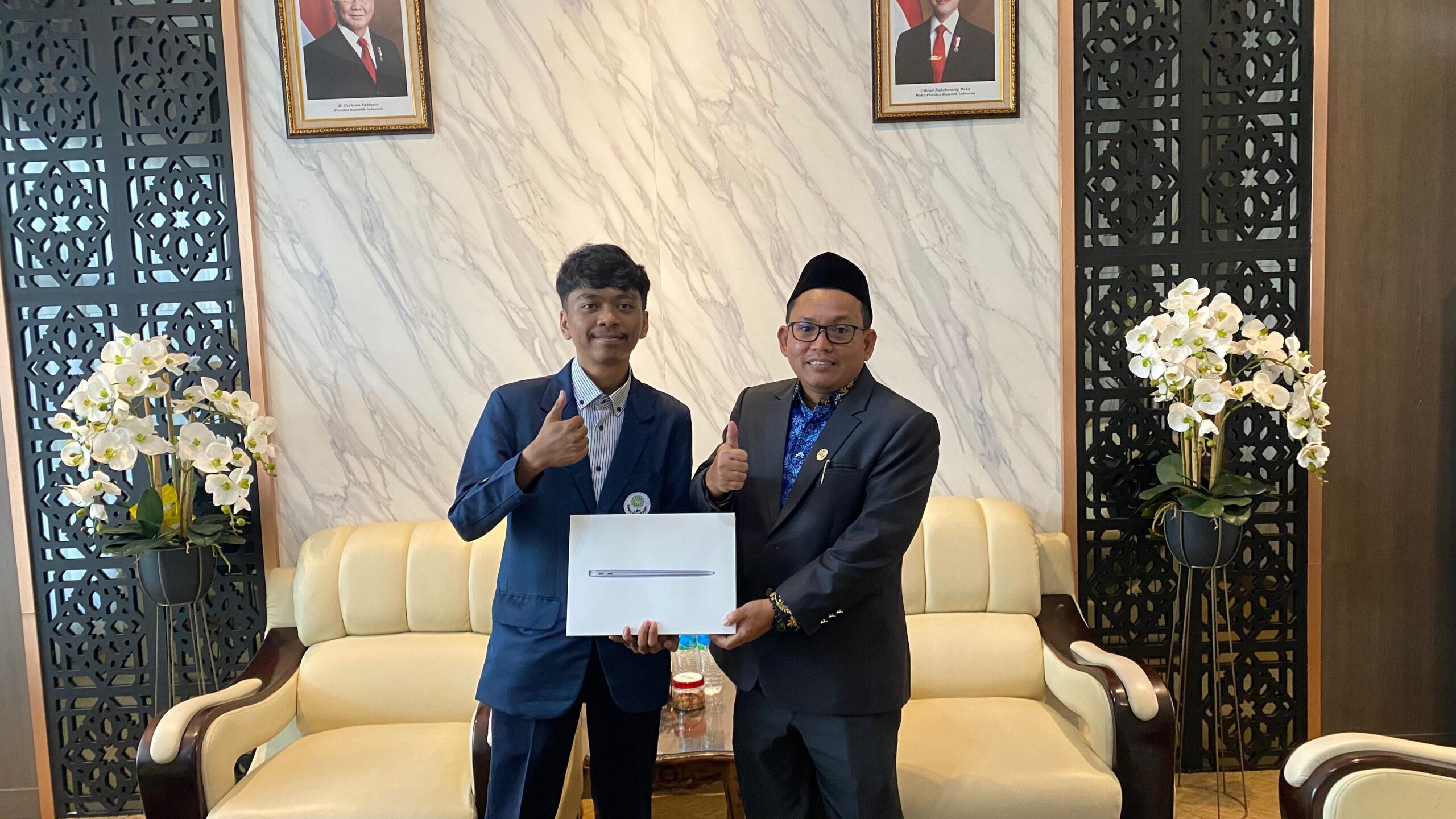 UINSGD.AC.ID (Humas) — Wakil Rektor III UIN Sunan Gunung Djati Bandung, Prof. Dr. Husnul Qodim, MA., didampingi oleh Wakil Dekan III Fakultas Sains dan Teknologi (FST), Undang Syaripudin, M.Kom memberikan hadiah kepada Muhammad Putera Fauzan Fatah, mahasiswa Program Studi Teknologi Informatika, yang berhasil meraih Juara 1 dalam ajang Annual Indonesian Career & Internship Fair (AICIF) Tahun 2025 di Gedung O. Djauharuddin AR, Selasa (17/6/2025).