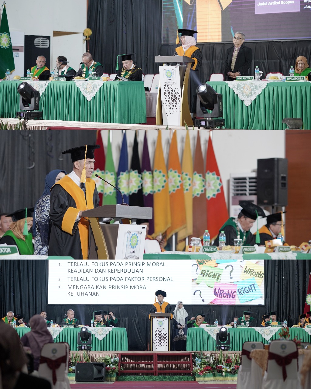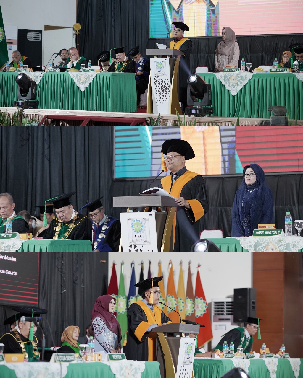 Rektor Prof Rosihon menegaskan bahwa pengukuhan Guru Besar bukan sekadar pencapaian akademik, tetapi merupakan simbol dedikasi, pengabdian, dan kontribusi nyata sivitas akademika dalam membangun peradaban.