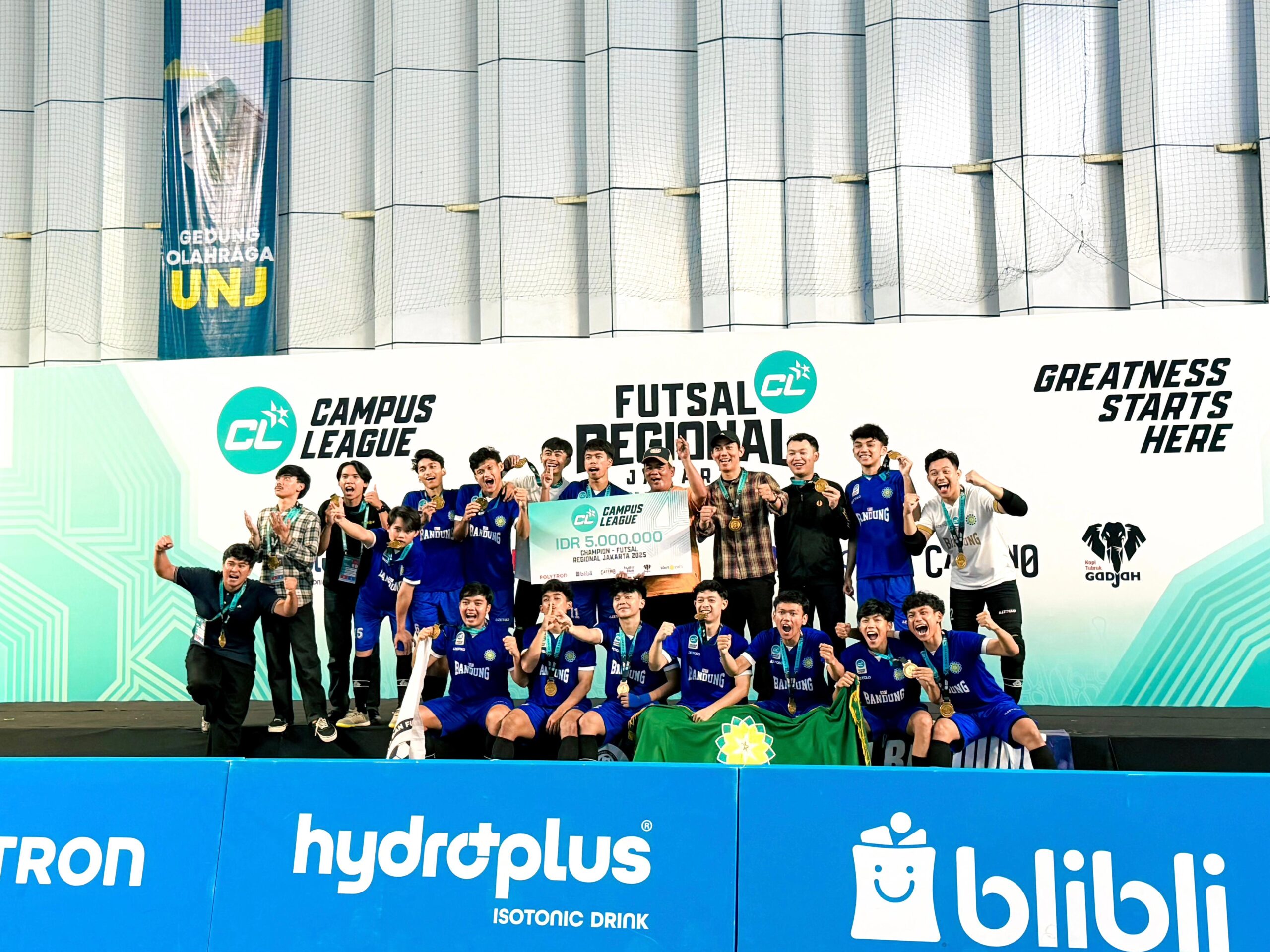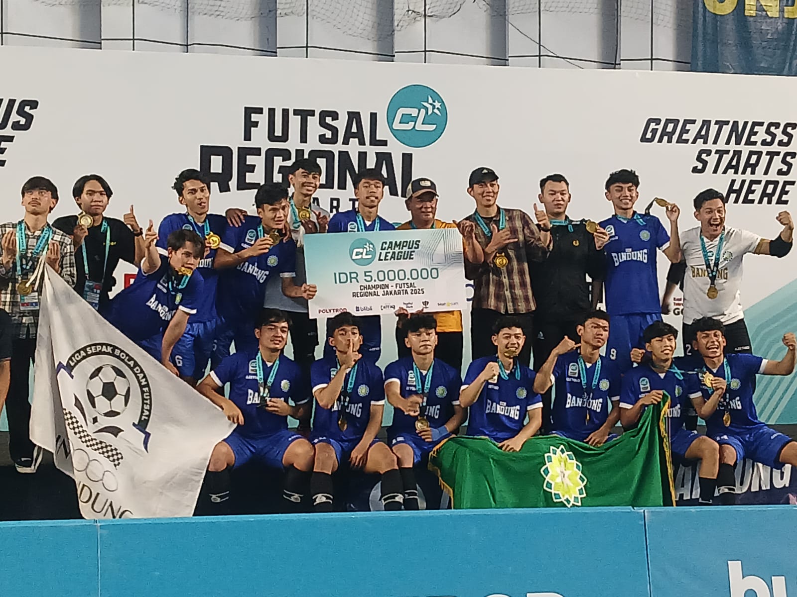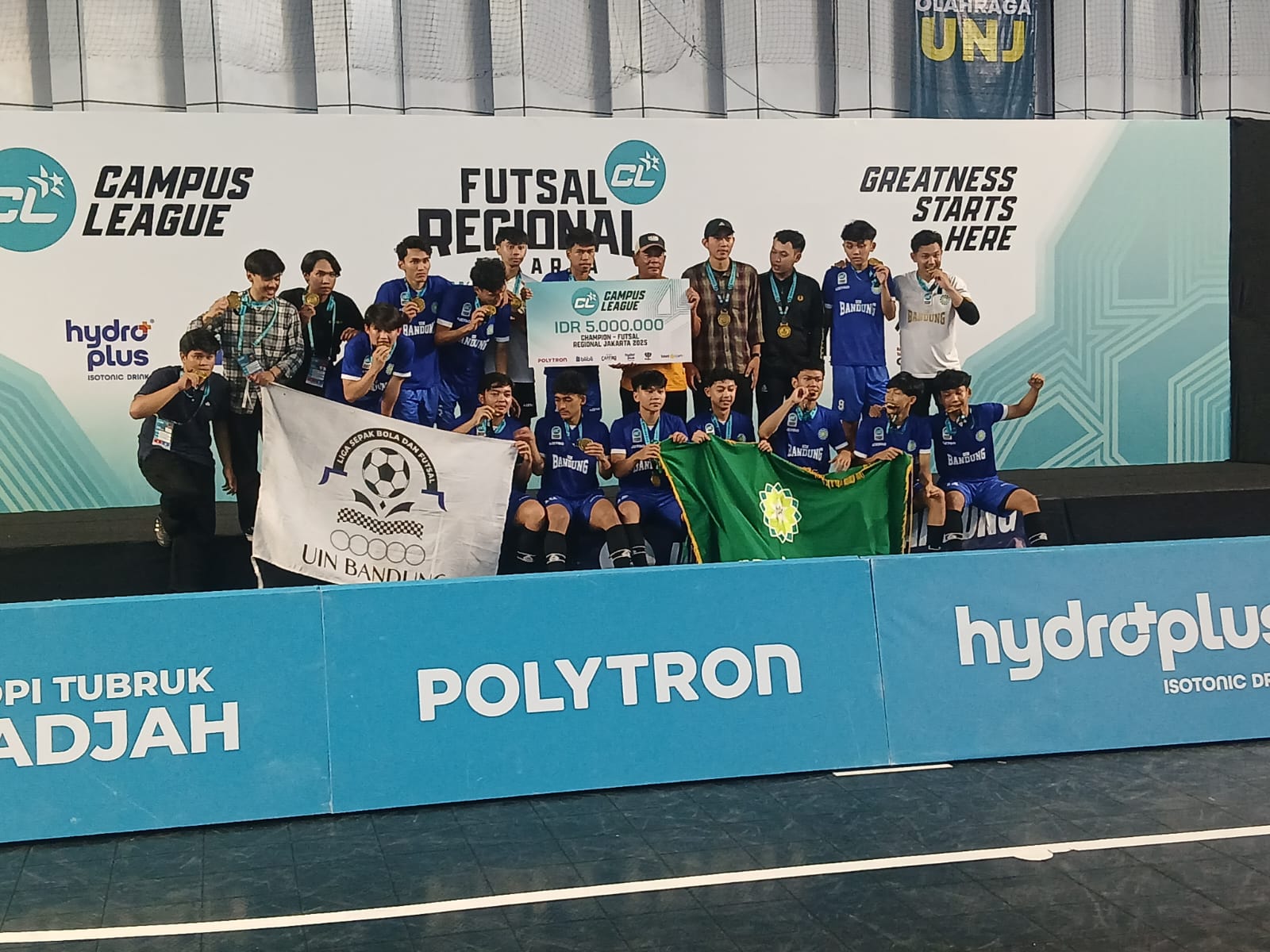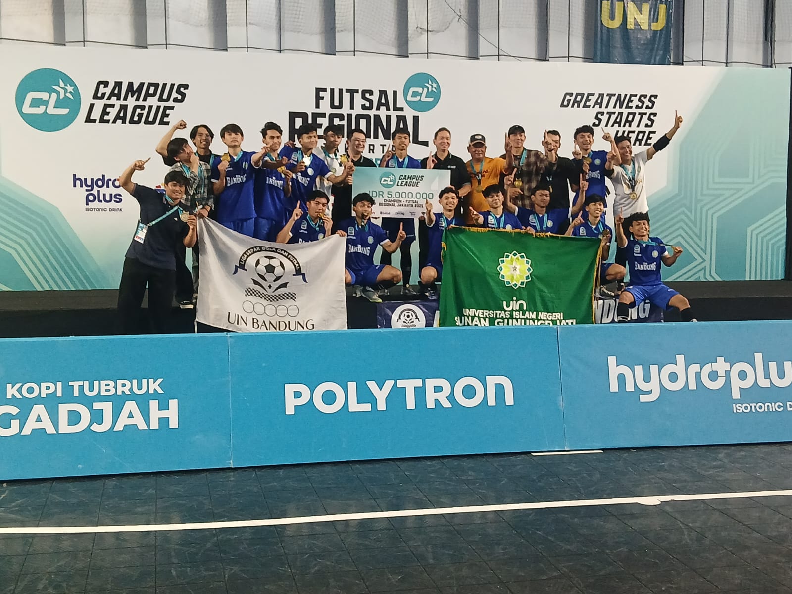 UINSGD.AC.ID (Humas) — Tim futsal putra UIN Sunan Gunung Djati Bandung berhasil meraih gelar juara pada ajang Campus League Regional Jakarta 2025 setelah menaklukkan tim STKIP Pasundan Cimahi dengan skor tipis 3–2 pada laga final yang berlangsung di GOR Universitas Negeri Jakarta, Jakarta Timur, Senin (1/12/2025) malam.