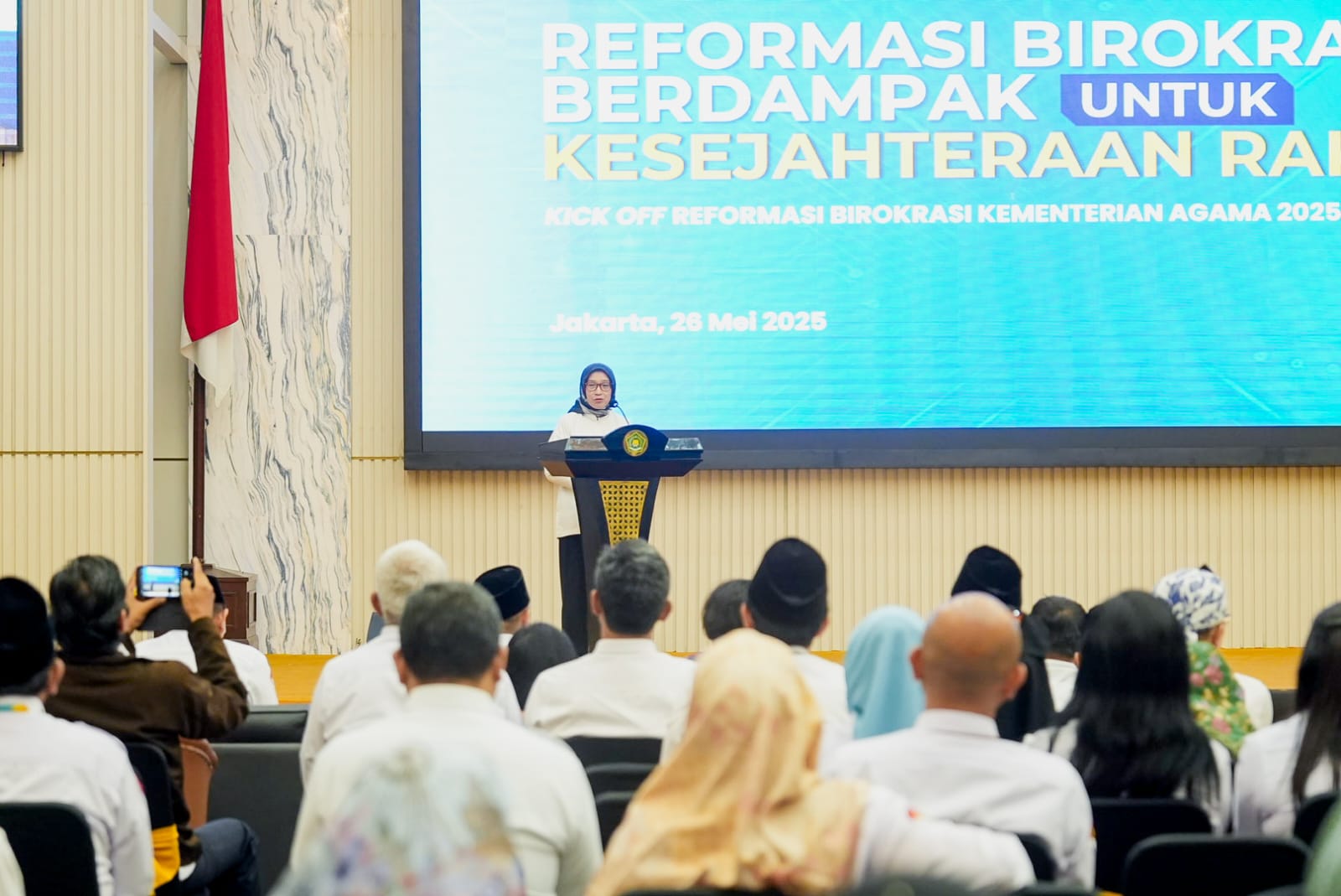 Pada kesempatan ini, Menteri Pendayagunaan Aparatur Negara dan Reformasi Birokrasi (PAN-RB), Rini Widiyantini, menyampaikan bahwa momentum kick off ini bukan sekadar seremoni, melainkan titik tolak penting dalam membangun birokrasi yang benar-benar melayani umat. Menurutnya, Kementerian Agama memiliki peran strategis karena menjadi garda depan dalam menjaga kerukunan umat serta masyarakat yang harmonis.