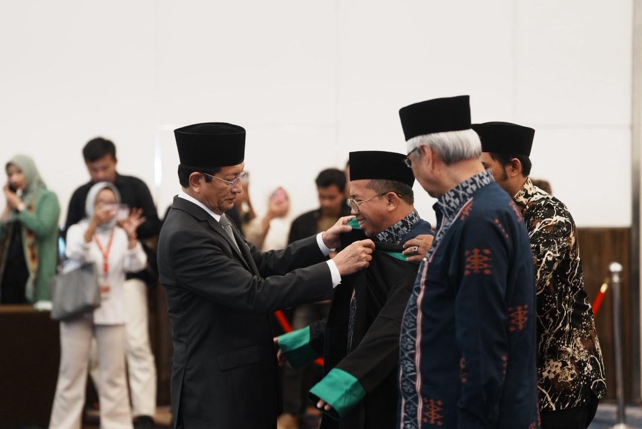 Setelah prosesi bai’at, Menteri Agama menyampaikan pernyataan pelantikan dengan menegaskan komitmen integritas seluruh dewan yang baru dilantik.