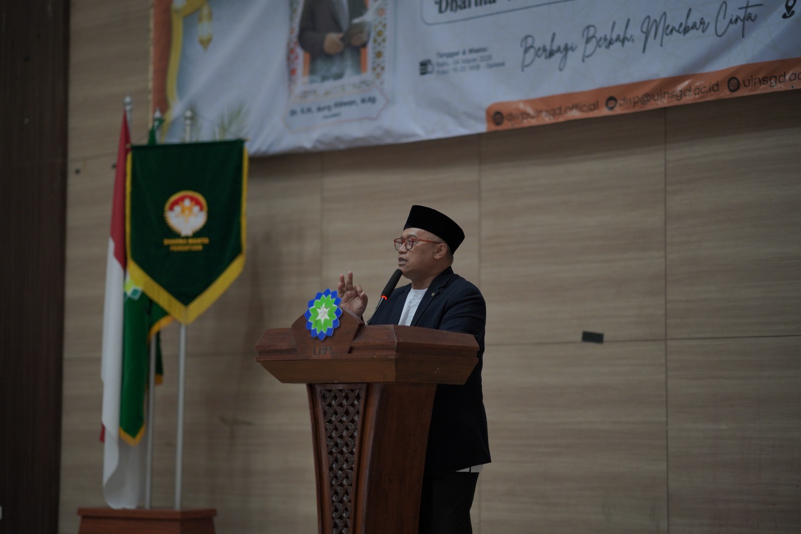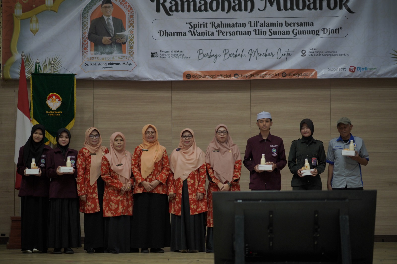 UINSGD.AC.ID (Humas) — Dalam semangat membangun kebersamaan dan menebar keberkahan bulan suci, Dharma Wanita Persatuan (DWP) UIN Sunan Gunung Djati Bandung menggelar Ramadhan Mubarak bertema “Spirit Rahmatan Lil ‘Alamin” yang berlangsung di Aula Abdjan Soelaeman, Rabu (04/03/2026).