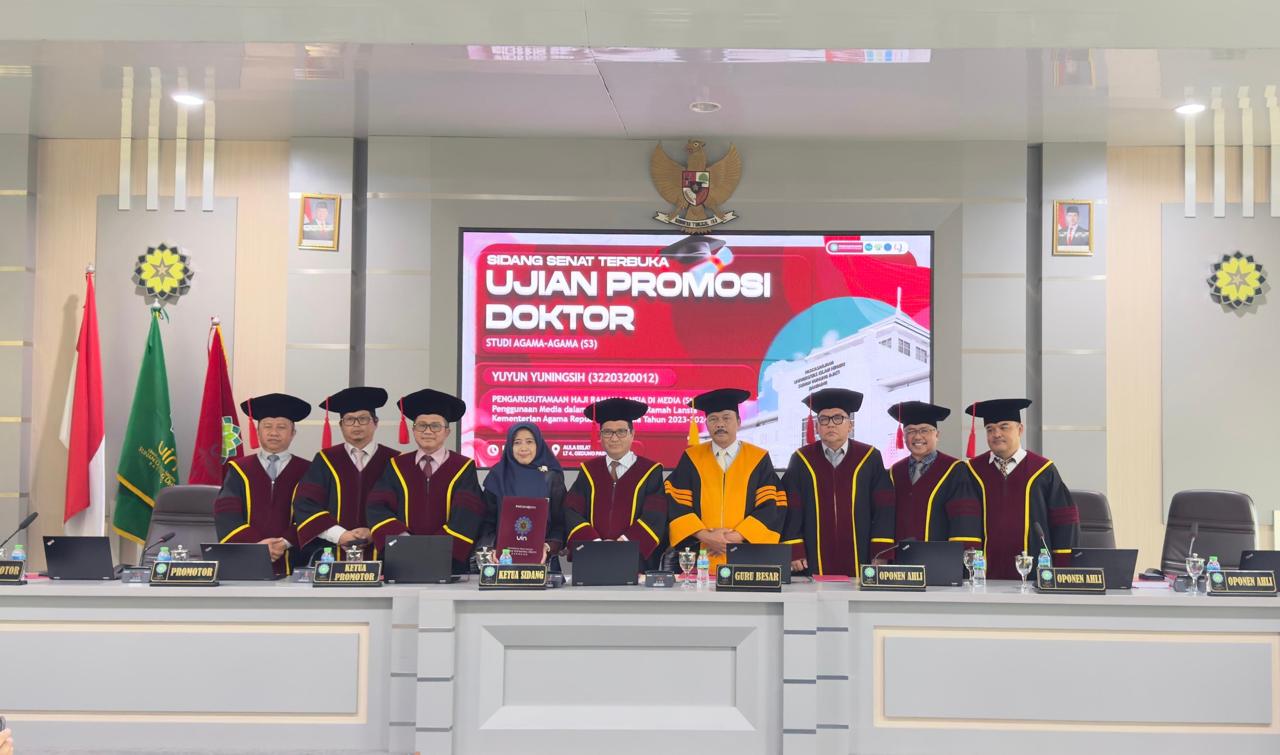 Dalam sidang terbuka itu, Yuyun Yuningsih mempertahankan disertasi berjudul “Pengarusutamaan Haji Ramah Lansia di Media (Studi terhadap Penggunaan Media dalam Sosialisasi Haji Ramah Lansia Kementerian Agama Republik Indonesia Tahun 2023–2024)”. Disertasi ini mengkaji peran media dalam membangun pemahaman publik terhadap kebijakan pelayanan haji yang inklusif dan berkeadilan bagi jamaah lansia.