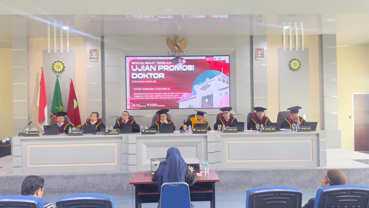 UINSGD.AC.ID (Humas) — Meningkatnya jumlah jamaah haji lanjut usia (lansia) yang menghadapi keterbatasan fisik, kesehatan, dan adaptasi layanan di Tanah Suci mendorong lahirnya kebijakan Haji Ramah Lansia yang kini menjadi perhatian publik nasional. Isu ini menjadi fokus kajian dalam Sidang Senat Terbuka Promosi Doktor Program Studi Studi Agama-agama Pascasarjana UIN Sunan Gunung Djati Bandung atas nama Yuyun Yuningsih, yang berlangsung di Aula Selatan Gedung Pascasarjana UIN Bandung, Rabu (28/1/2026)