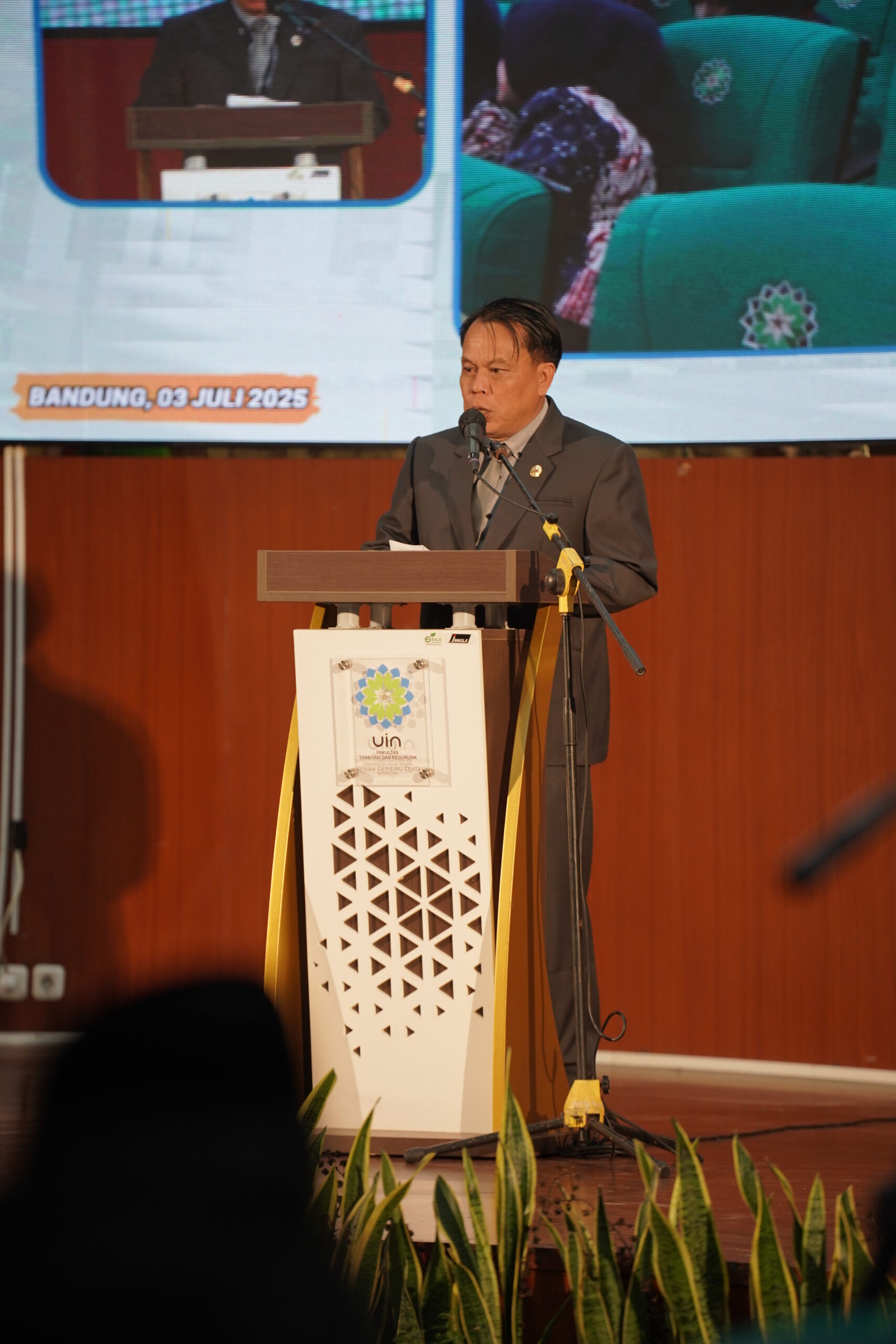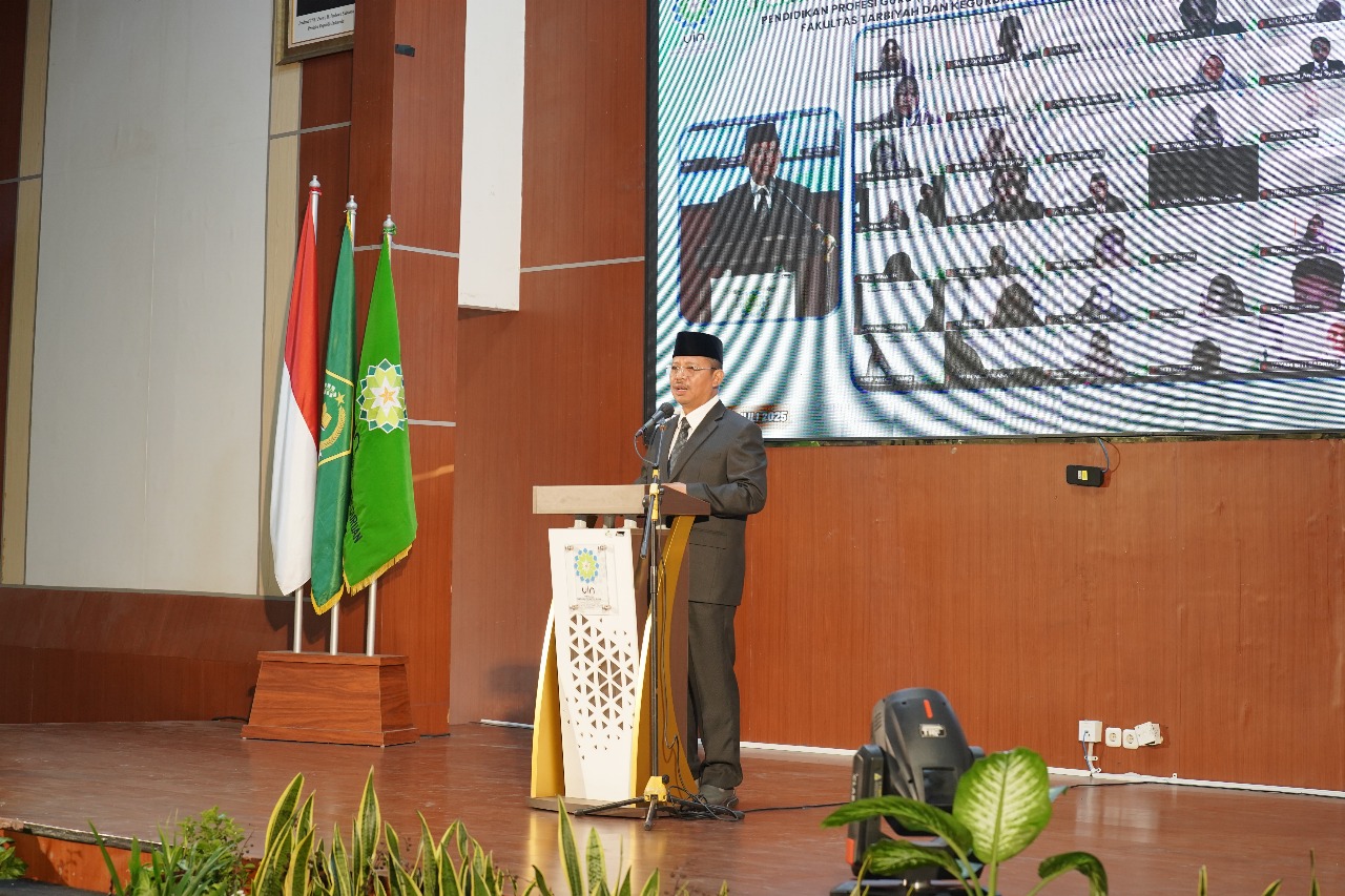 “Pada hari ini, Kamis tanggal 3 Juli 2025, saya Plh. Rektor UIN Sunan Gunung Djati Bandung, mengukuhkan saudara-saudari yang telah lulus uji kompetensi Mahasiswa Pendidikan Profesi Guru (PPG) dalam jabatan periode 1 tahun 2025 LPTK UIN Sunan Gunung Djati sebagai Guru Profesional.”