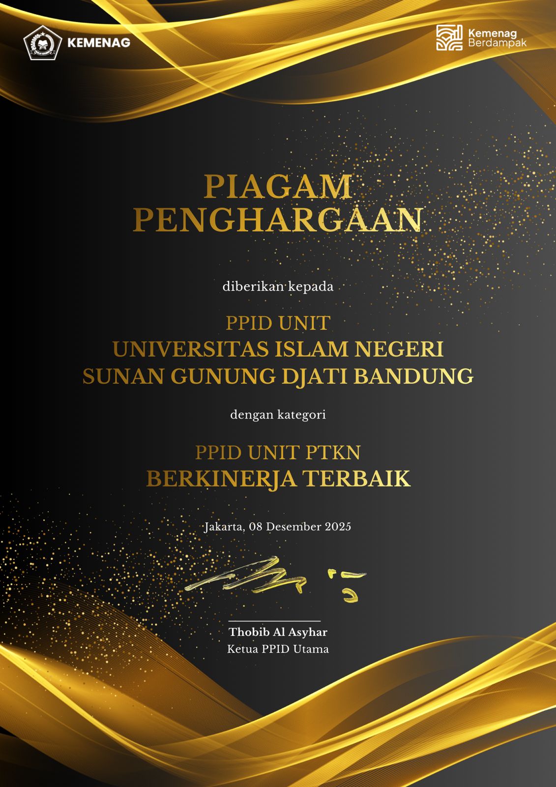 UINSGD.AC.ID (Humas) — Pejabat Pengelola Informasi dan Dokumentasi (PPID) UIN Sunan Gunung Djati Bandung meraih apresiasi dari PPID Utama Kementerian Agama RI sebagai salah satu PTKN Terbaik dalam pelaksanaan Keterbukaan Informasi Publik Tahun 2025.