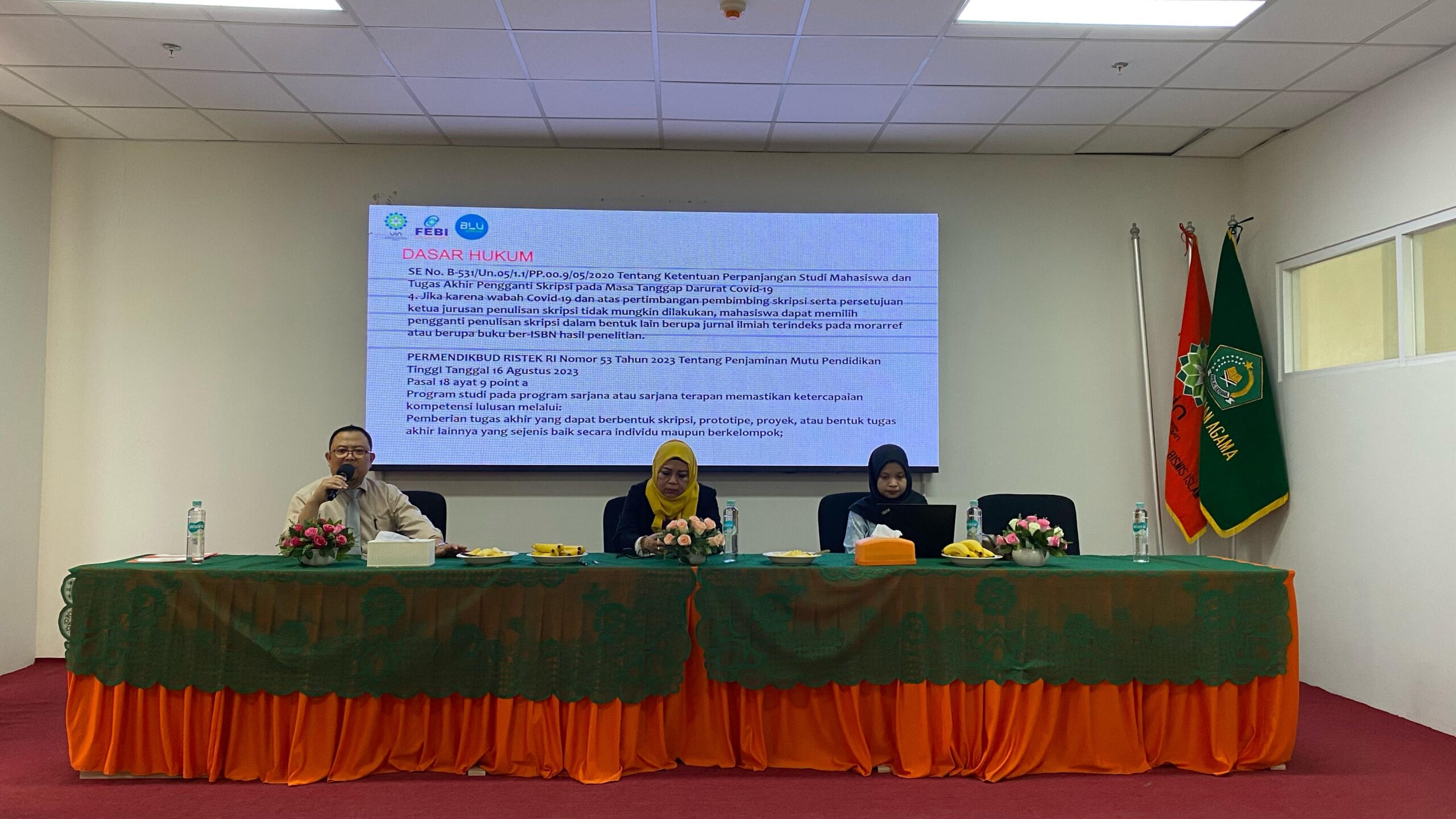 Ketua Program Studi studi Akuntansi Syariah, Mia Lasmi Wardiyah, S.P, M.Ag, CPRM didampingi Sekretaris Fithri Dzikrayah, S. E., M. E. menyampaikan kegiatan sosialisasi ini bertujuan memberikan pemahaman mendalam terkait kebijakan terbaru dalam penyusunan tugas akhir mahasiswa. Tugas akhir kini dapat disesuaikan dengan berbagai bentuk, seperti skripsi, proyek, prototipe, atau karya ilmiah lainnya.