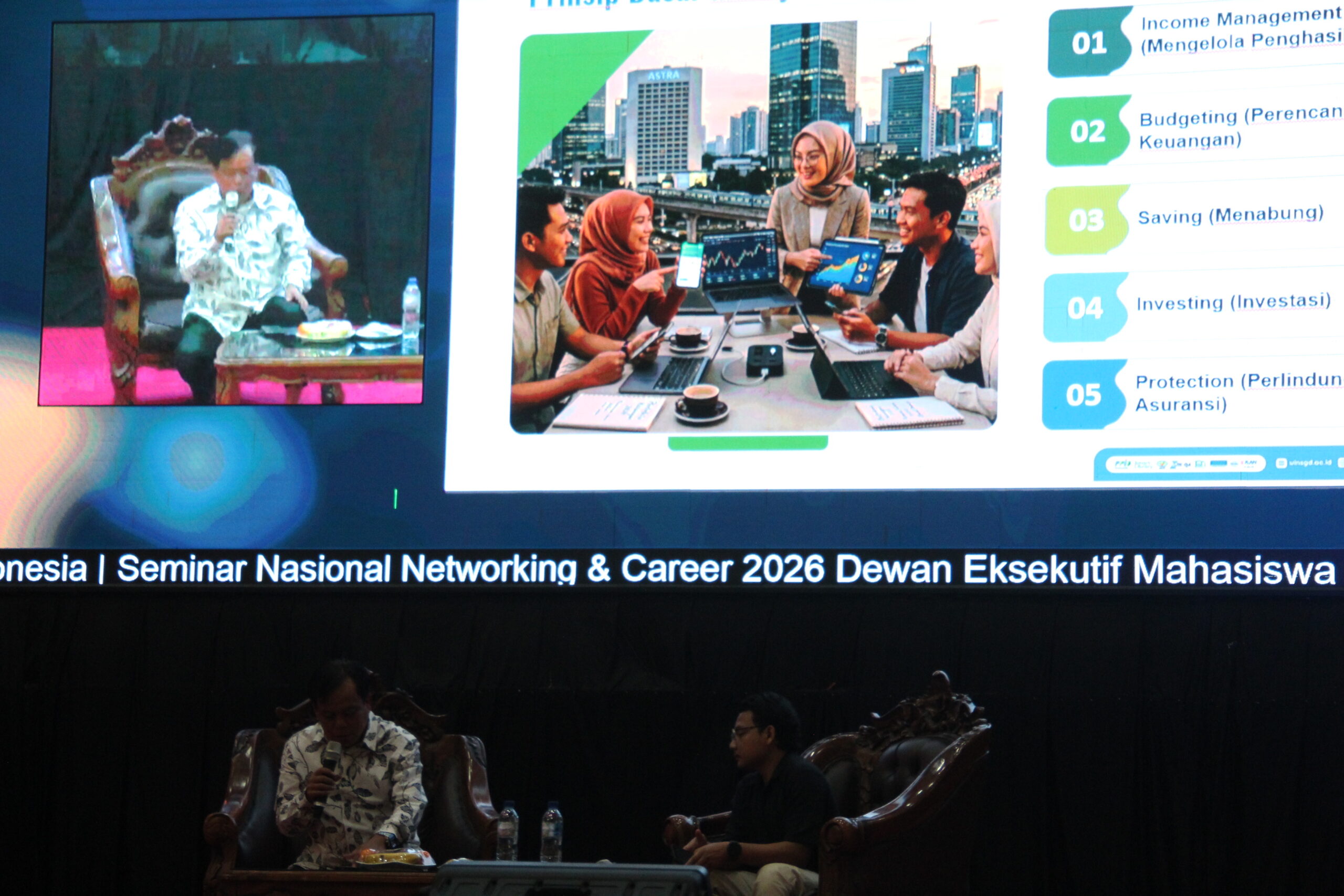 Wakil Rektor II ini memaparkan lima prinsip dasar dalam manajemen keuangan yang perlu dimiliki generasi muda, yakni kemampuan mengelola penghasilan (income management), menyusun perencanaan keuangan (budgeting), membangun kebiasaan menabung (saving), melakukan investasi (investing), serta memiliki perlindungan finansial melalui asuransi (protection).
