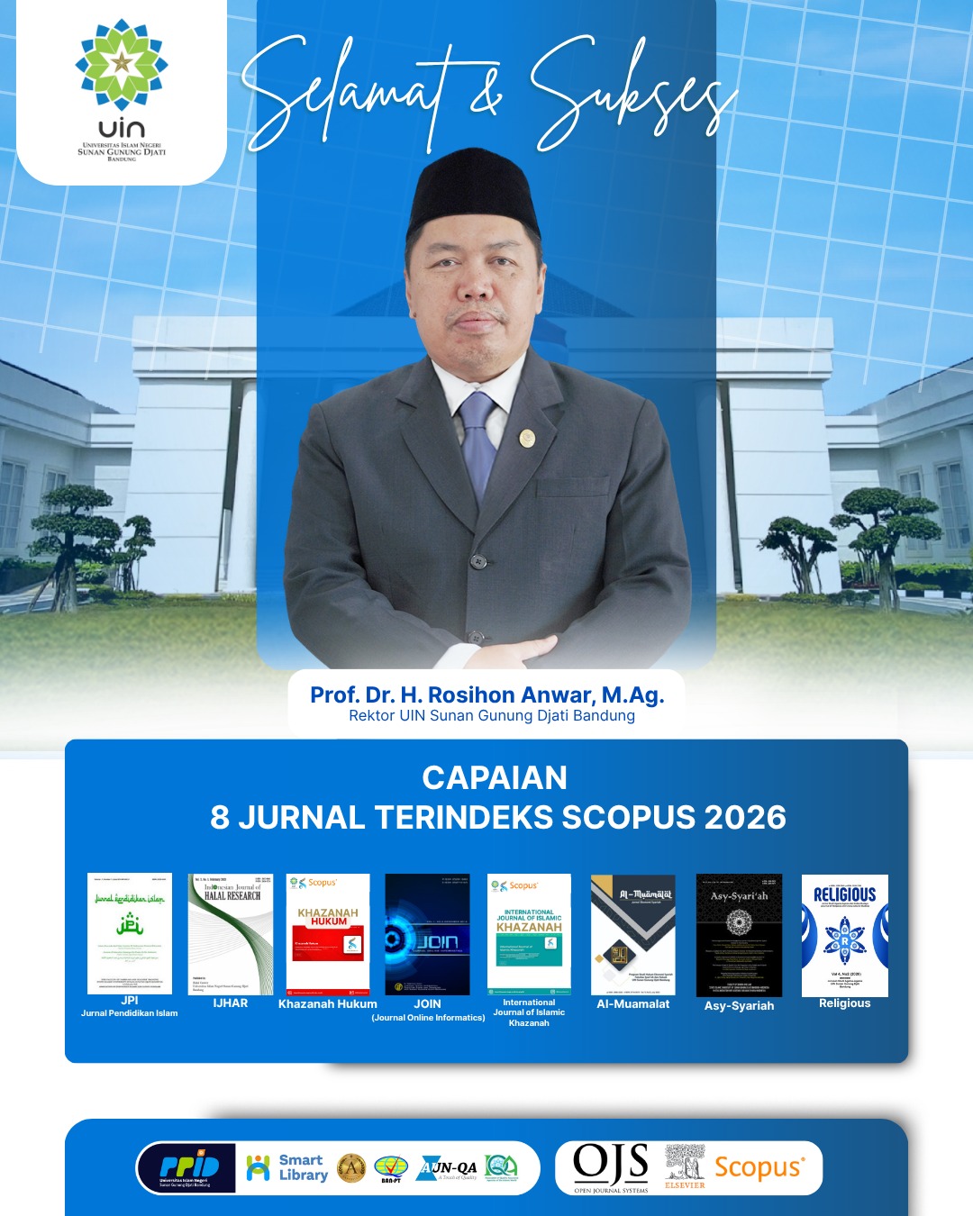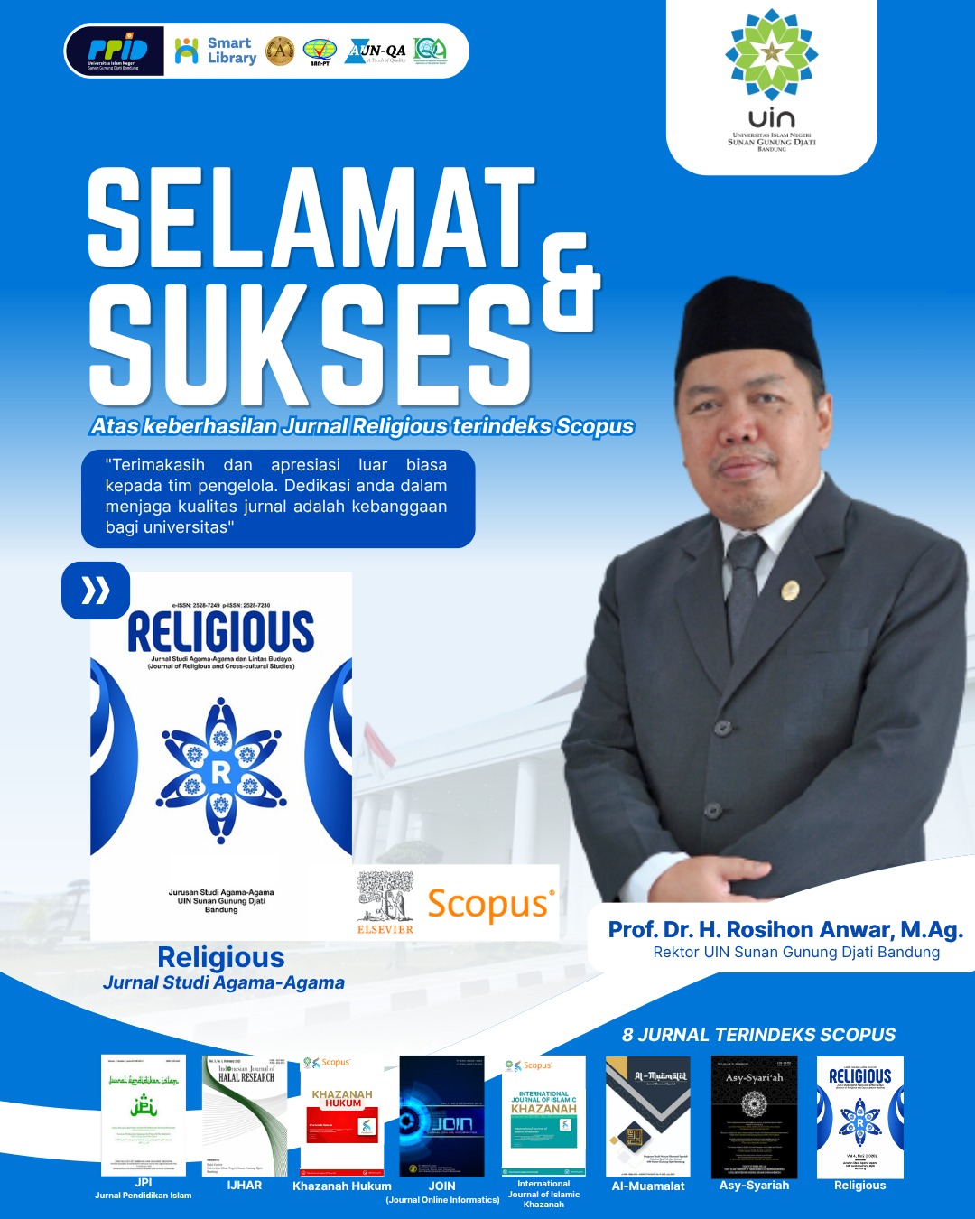Rektor UIN Sunan Gunung Djati Bandung, Prof. Dr. H. Rosihon Anwar, M.Ag., menyampaikan bahwa diterimanya Religious di Scopus merupakan buah dari sinergi kelembagaan, konsistensi penguatan mutu akademik, dan kerja kolektif yang dilakukan secara berkelanjutan.