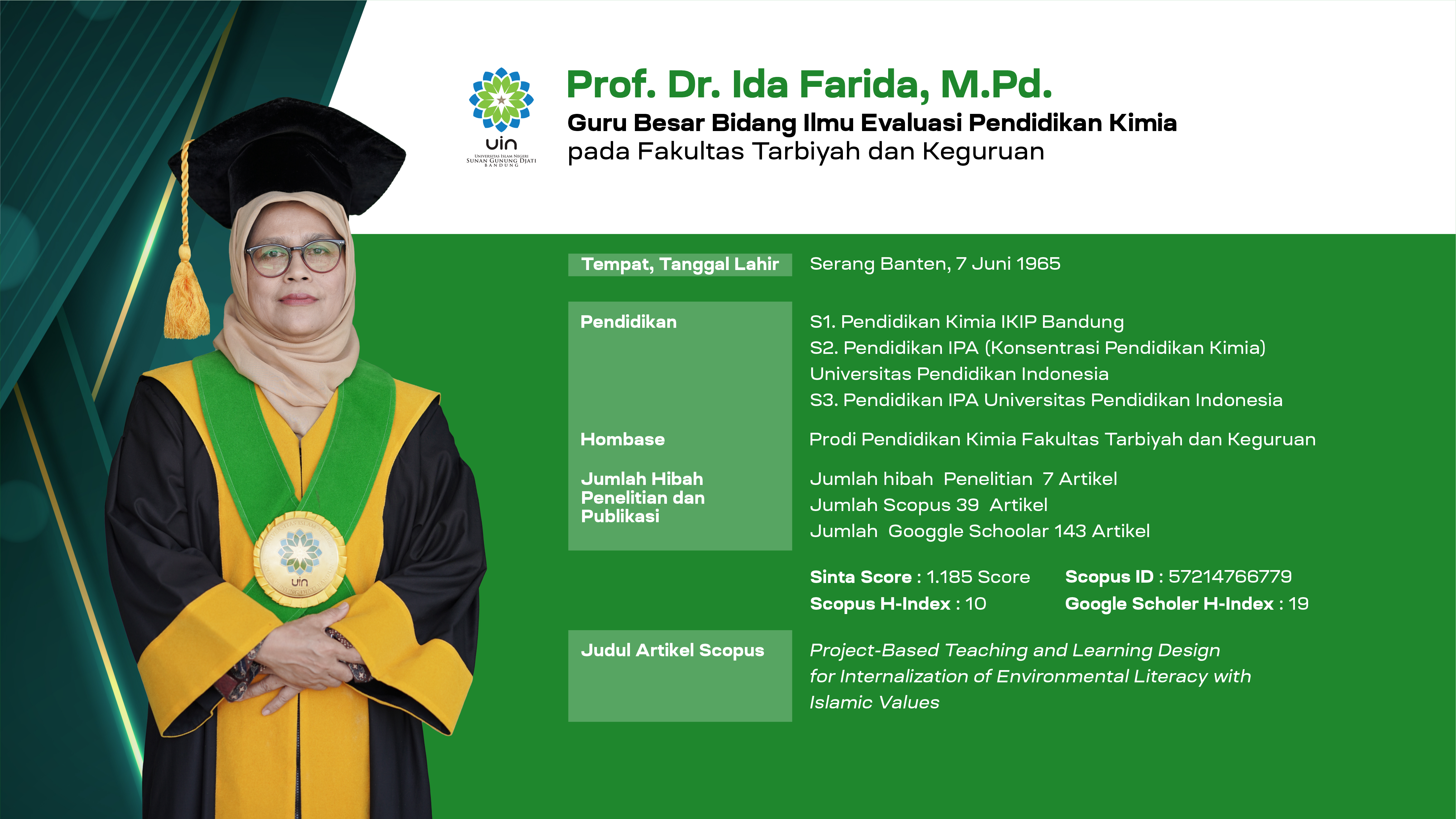 Ida Farida, (Guru Besar Bidang Ilmu Evaluasi Pendidikan Kimia pada Fakultas Tarbiyah dan Keguruan)