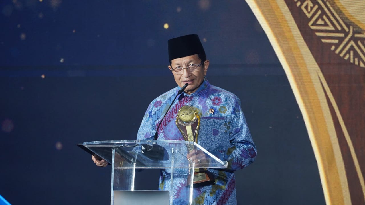 Penghargaan diterima langsung oleh Menteri Agama Nasaruddin Umar. Hadir mendampingi, Sekjen Kemenag Kamaruddin Amin, Staf Khusus Menag bidang Pengambangan SDM dan Media Ismail Cawidu, Kepala Biro Humas dan Komunikasi Publik Thobib Al Asyhar.