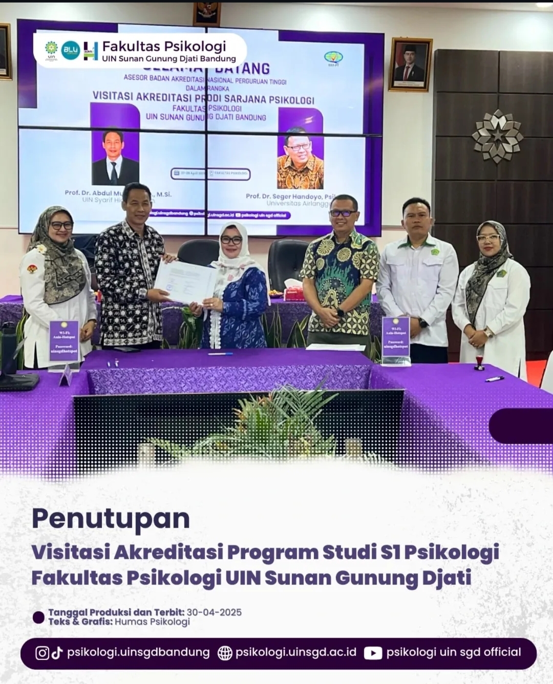 “Setelah ditunggu cukup lama, akhirnya hasil Assessment Lapangan (AL) keluar dengan predikat Unggul. Ini kebahagiaan tersendiri bagi Fakultas Psikologi dan tentunya bagi UIN Bandung,” ujar Prof. Rosihon, Jumat (16/5/2025).