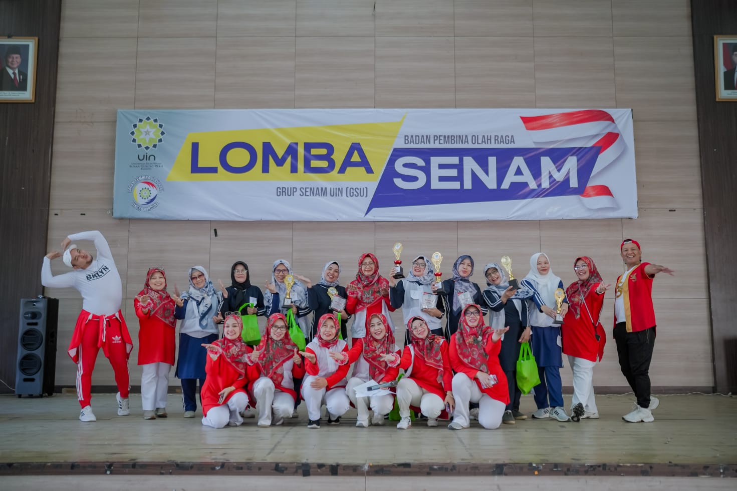 UINSGD.AC.ID (Humas) — Dalam rangka memperingati Hari Kemerdekaan Republik Indonesia ke-80, Badan Pembina Olahraga (BAPOR) bekerja sama dengan Grup Senam UIN (GSU) menggelar Lomba Senam dan Bazar UMKM yang berlangsung meriah di Gedung Abdjan Soelaeman, Jumat, (15/8/2025).