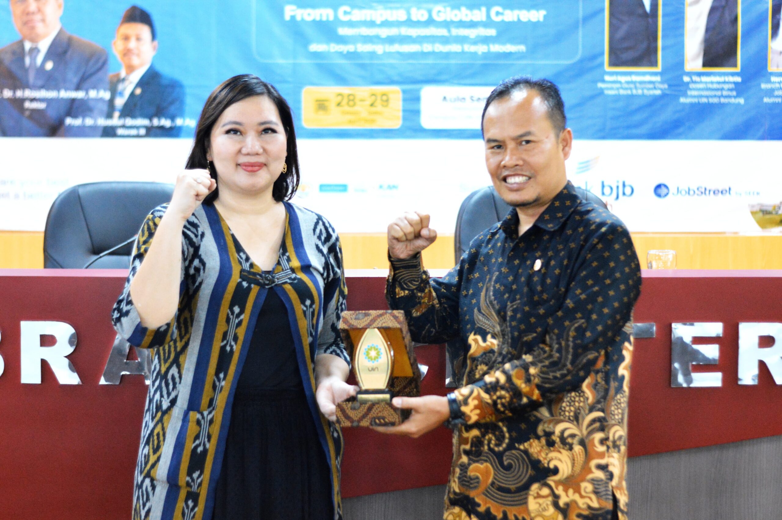 Dengan menghadirkan empat narasumber profesional dan alumni inspiratif dari berbagai bidang, di antaranya: Nuri Agus Ramdhani, Pemimpin Divisi Sumber Daya Insani Bank BJB Syariah; Dr. Tia Mariatul Kibtia, Dosen Hubungan Internasional Binus sekaligus alumni UIN SGD Bandung; Hervina Dwi Wunjar, Branch Manager West Java Jobstreet by SEEK dan alumni UIN SGD Bandung; Roslani Christanti, Chief Executive Officer PT Orbit Nasional Edukasi (ONE).