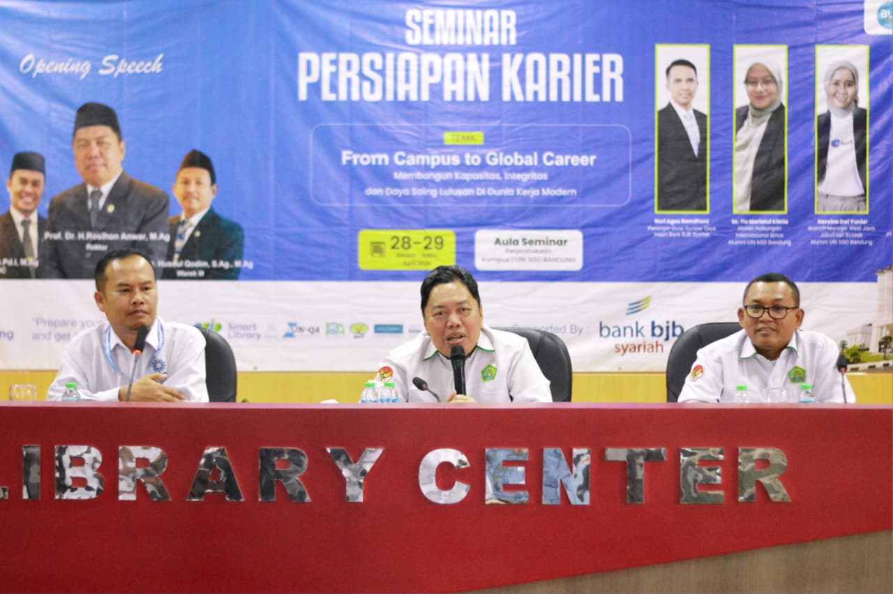 UINSGD.AC.ID (Humas) — Career Development Center (CDC) UIN Sunan Gunung Djati Bandung menggelar Seminar Persiapan Karier yang berlangsung di Aula Perpustakaan Kampus 1 pada Selasa-Rabu, 28–29 April 2026.