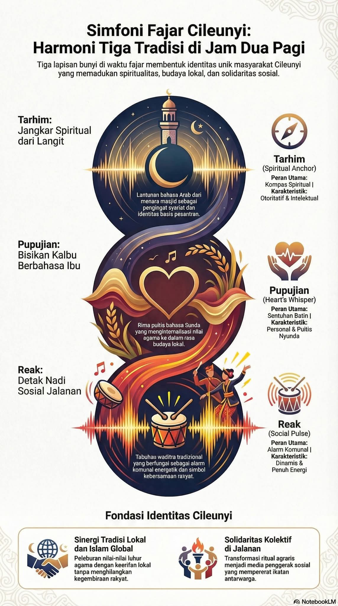 Keheningan dini hari biasanya pertama kali dipecah oleh gema Tarhim berbahasa Arab dari menara-menara masjid. Suara ini muncul sebagai narasi langit yang otoritatif, sebuah jangkar intelektual yang mematri identitas Cileunyi sebagai basis pesantren yang kuat. Di jam dua pagi yang dingin, lantunan syahdu itu membubung: