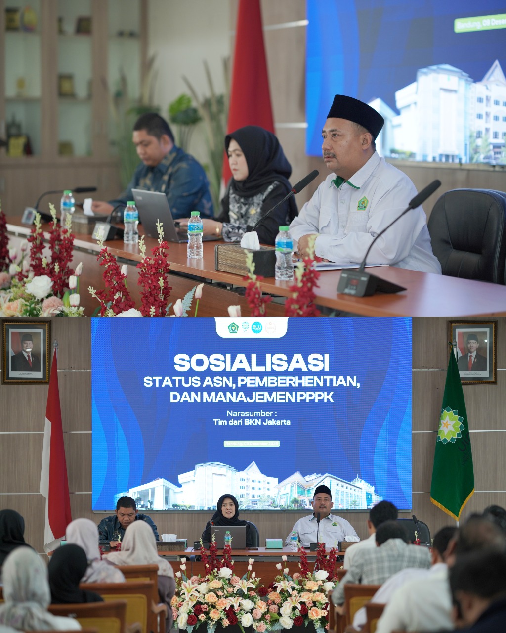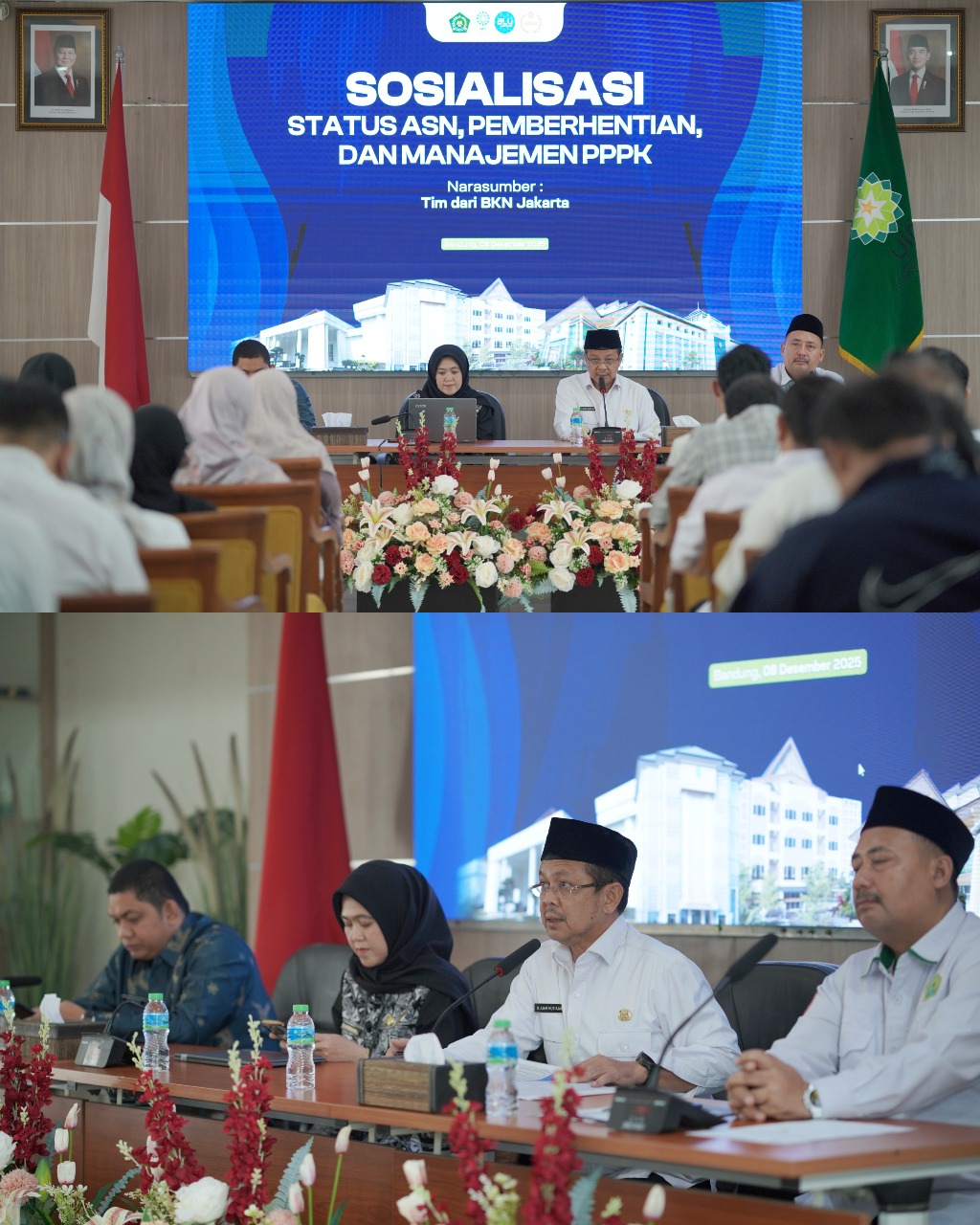 Kegiatan ini menghadirkan para pejabat, pengelola kepegawaian, serta ASN dan PPPK di lingkungan kampus. Dengan menghadirkan dua narasumber: Direktur Status dan Pemberhentian ASN BKN Pusat, Lia Rosalina, S.Sos., MAP; Kepala Bagian Tata Usaha Kanreg III BKN Bandung, Delpa Nopri Kasmi, SH., M.Si. Kegiatan dipandu oleh Ketua Tim Kerja Organisasi, Kepegawaian, dan Hukum, H. Asep Saepudin Malik, M.Ag.