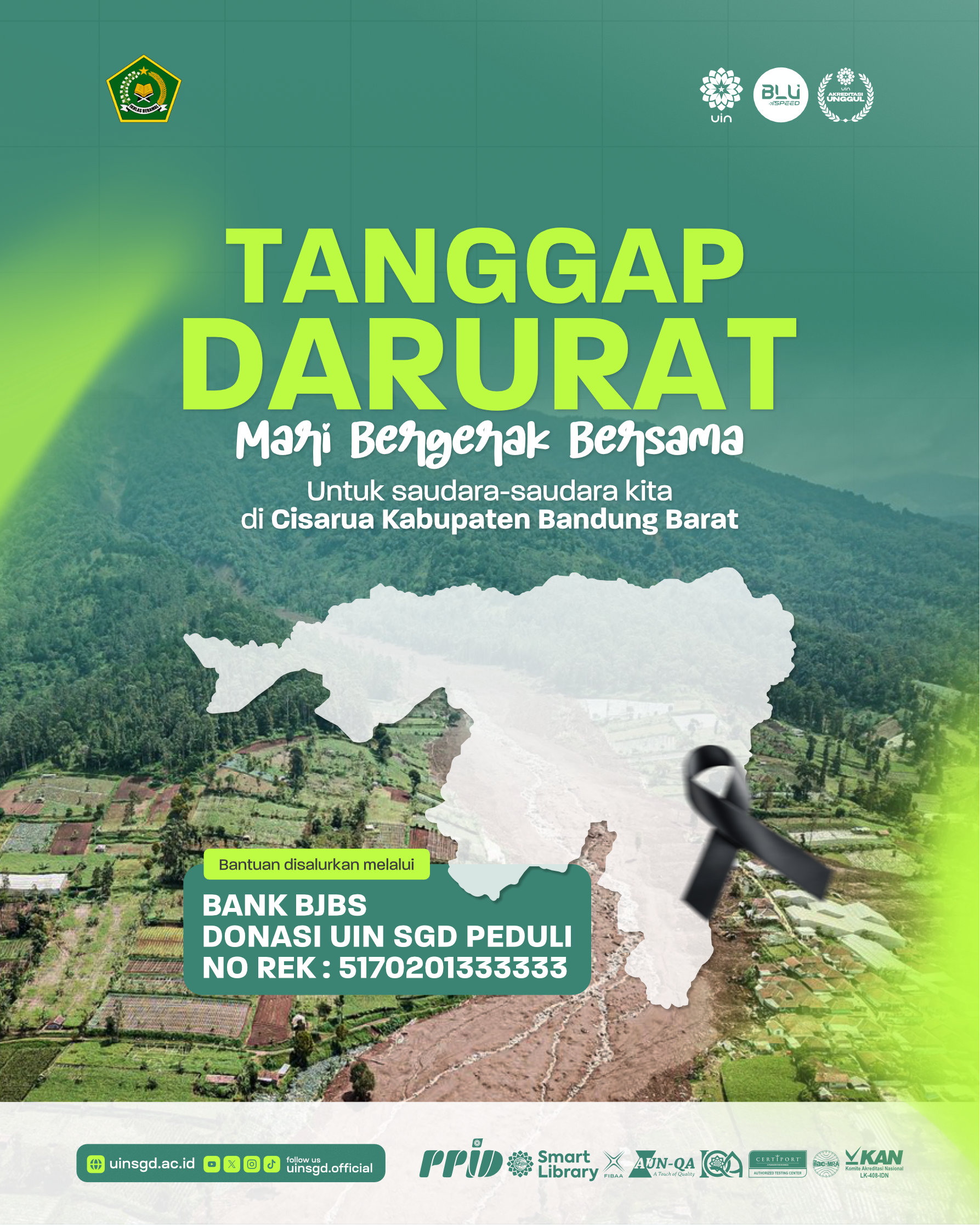 Kami mengajak seluruh keluarga besar UIN Sunan Gunung Djati Bandung untuk ikut ambil bagian dalam aksi peduli Cisarua.