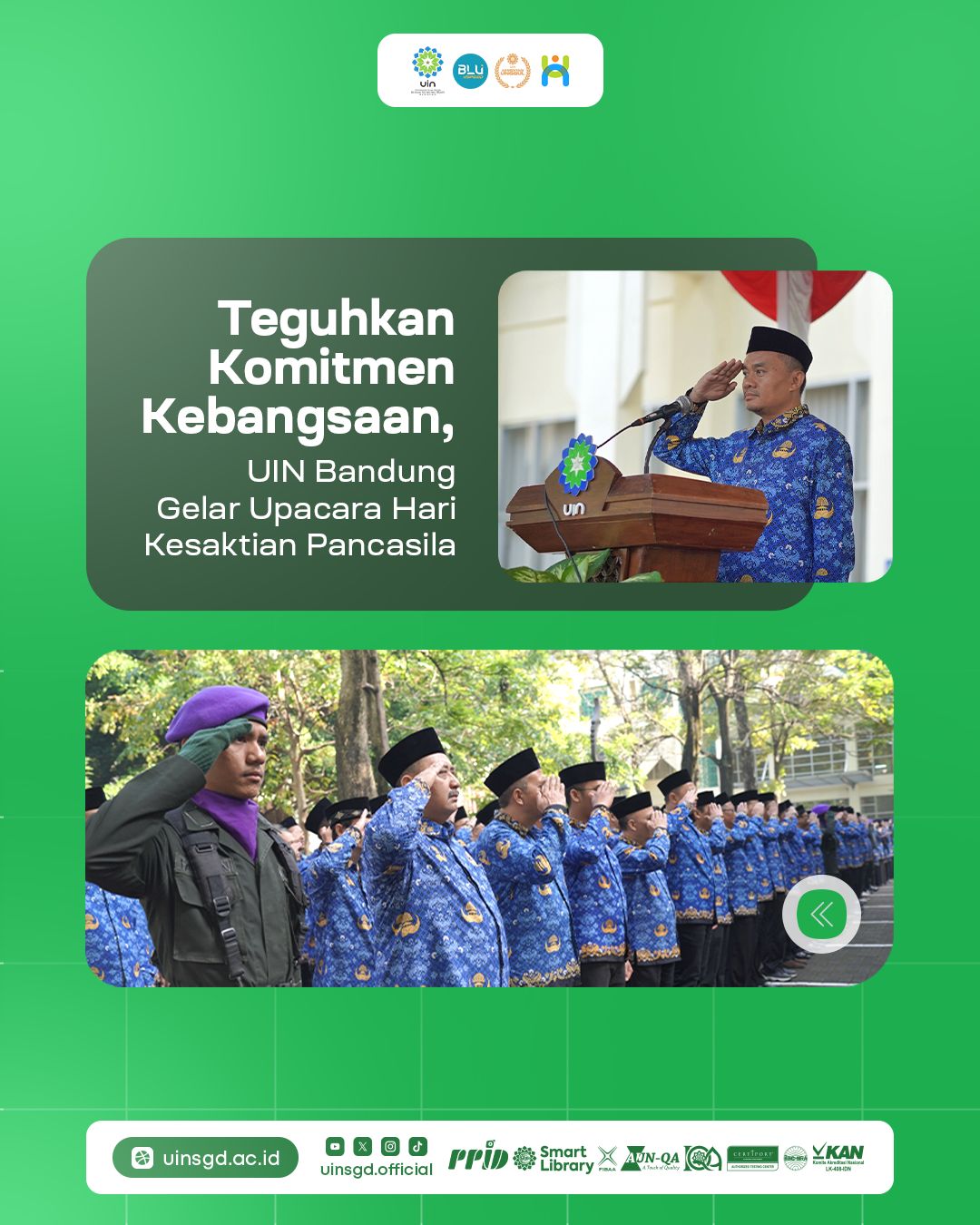 UINSGD.AC.ID (Humas) — Dalam rangka memperingati Hari Kesaktian Pancasila tahun 2025, civitas akademika UIN Sunan Gunung Djati Bandung menggelar upacara di Tugu Kujang, depan Gedung Anwar Musaddad, Rabu (1/10/2025).