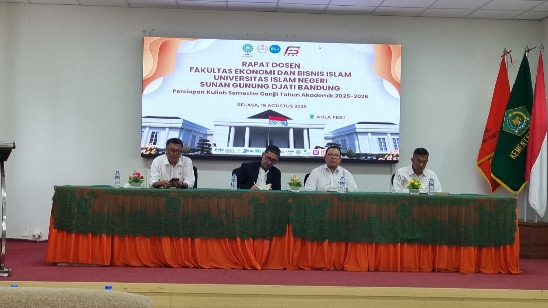 UINSGD.AC.ID (Humas) — Fakultas Ekonomi dan Bisnis Islam (FEBI) UIN Sunan Gunung Djati Bandung menggelar Rapat Dosen Persiapan Perkuliahan Semester Ganjil Tahun Akademik 2025/2026, bertempat di Ruang Rapat FEBI, Selasa (19/8/2025).