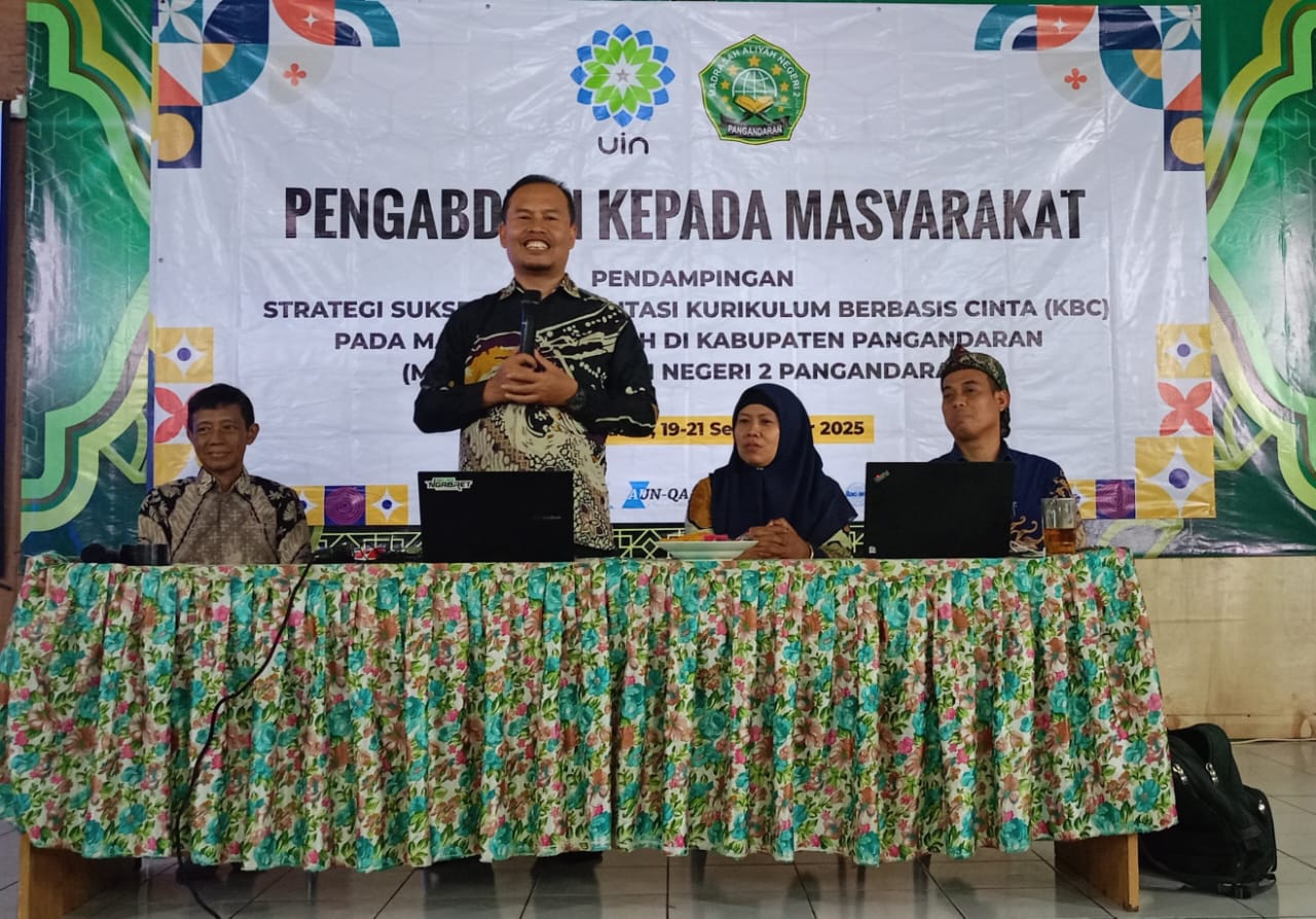 UINSGD.AC.ID (Humas) — MAN 2 Pangandaran menerima kunjungan tim dari Lembaga Penelitian dan Pengabdian kepada Masyarakat (LPPM) UIN Sunan Gunung Djati Bandung. Kegiatan ini berfokus pada pendampingan strategi sukses implementasi Kurikulum Berbasis Cinta (KBC) yang dipandu oleh 2 (dua) narasumber utama hadir: Dr. Heri Gunawan, S.Pd.I., M.Ag., dan Dr. H. Firdos Mujahidin, S.Ag., M.Ag.