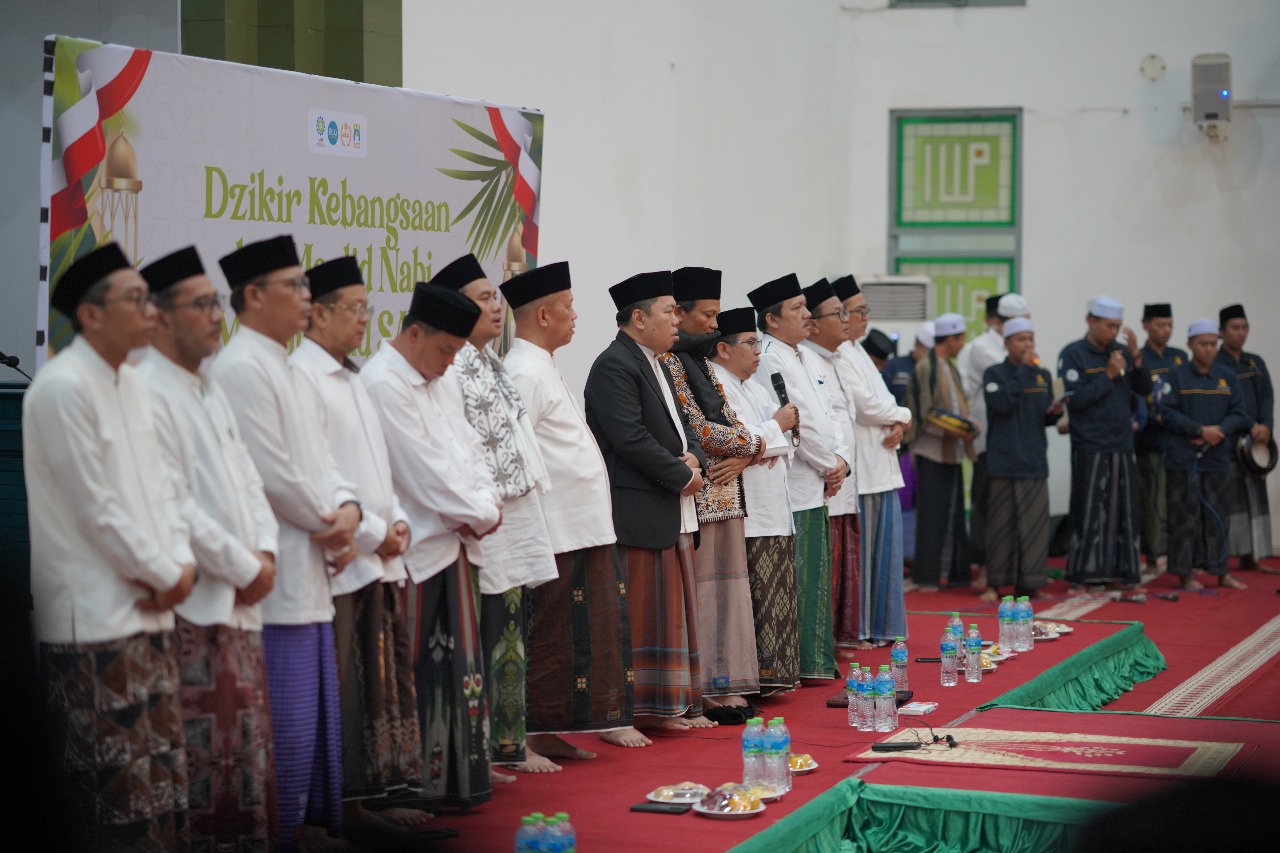 UINSGD.AC.ID (Humas) – UIN Sunan Gunung Djati Bandung menggelar Dzikir Kebangsaan dan Maulid Nabi Muhammad SAW di Masjid Ikomah, Kampus I, Kamis (4/9/2025) malam.