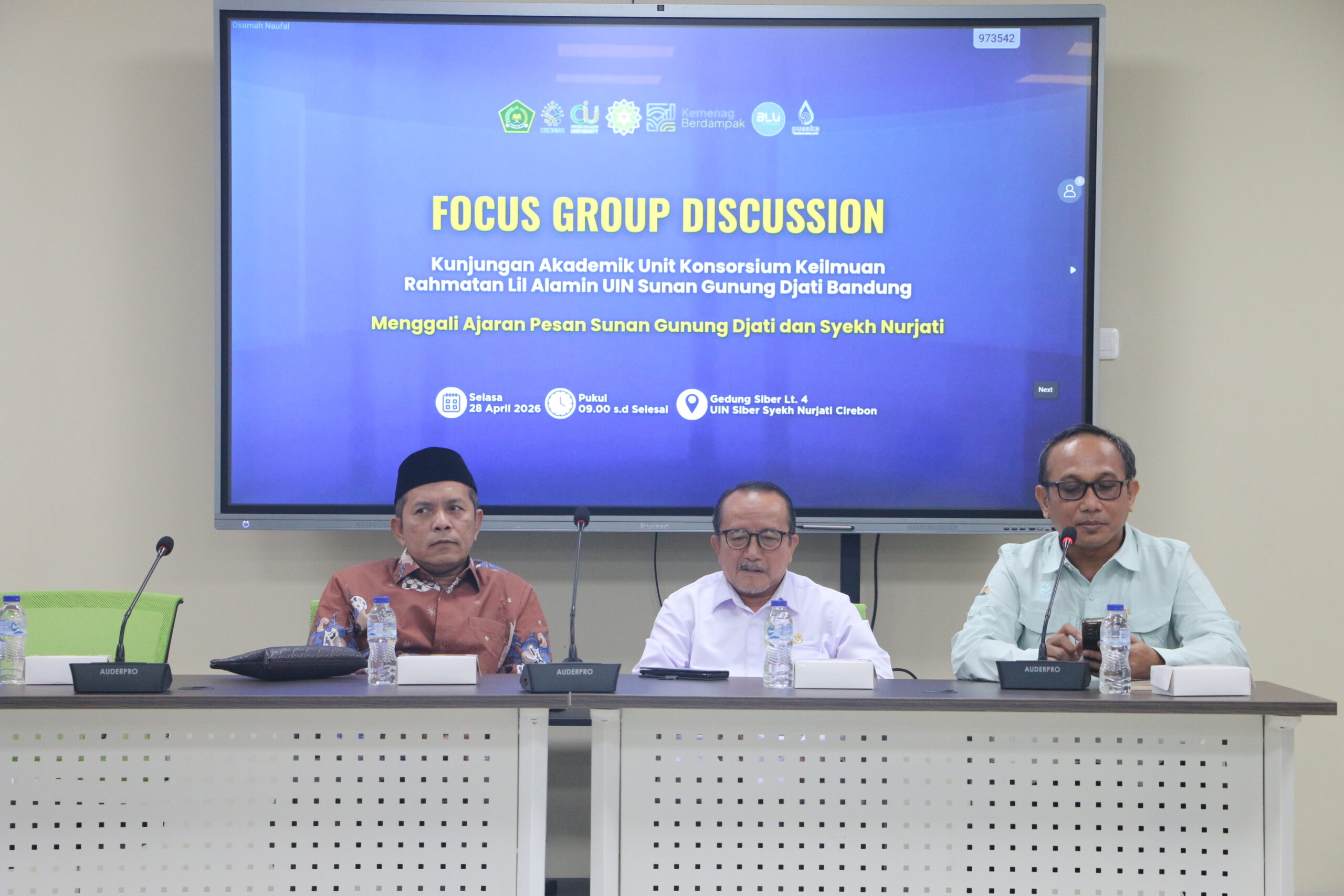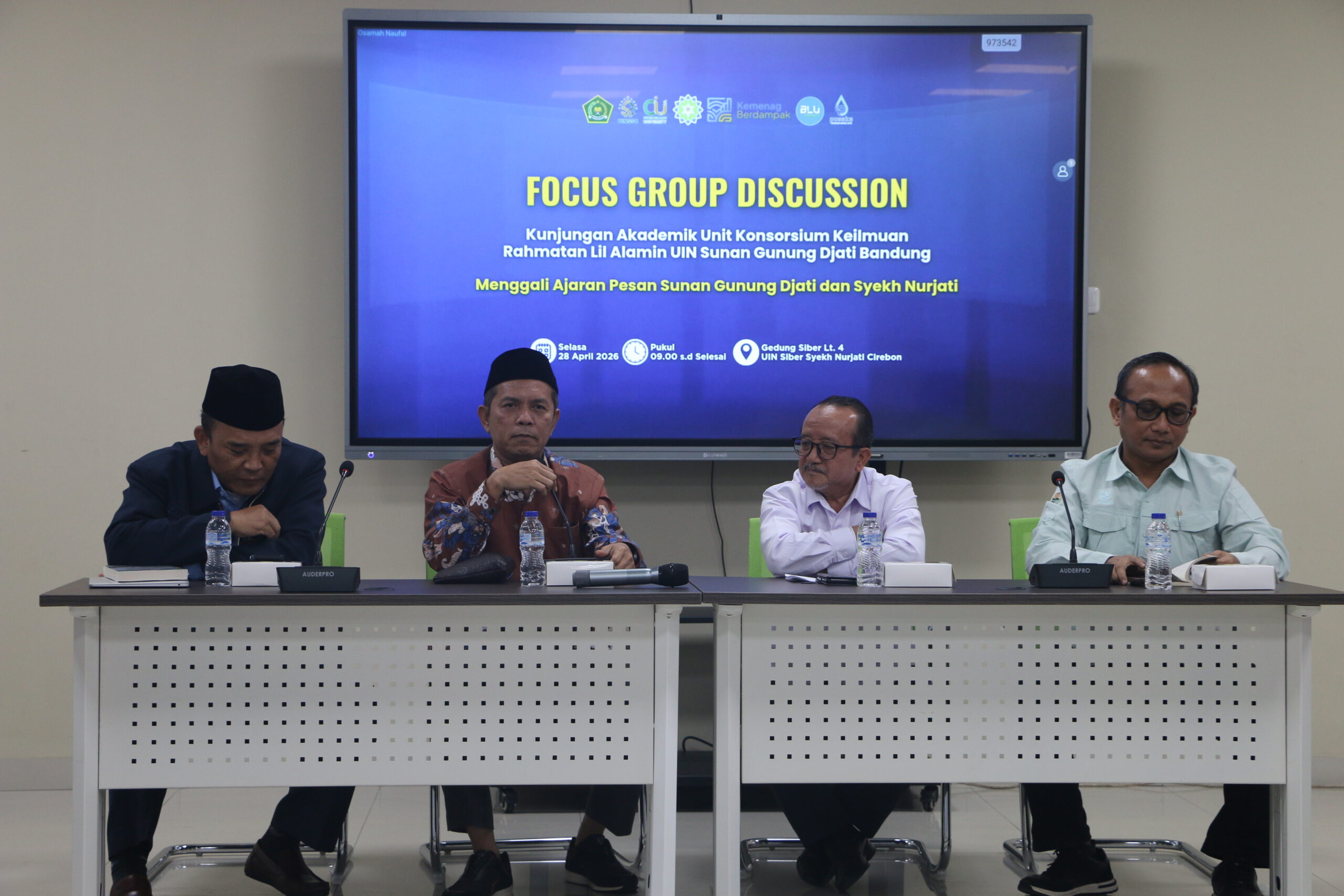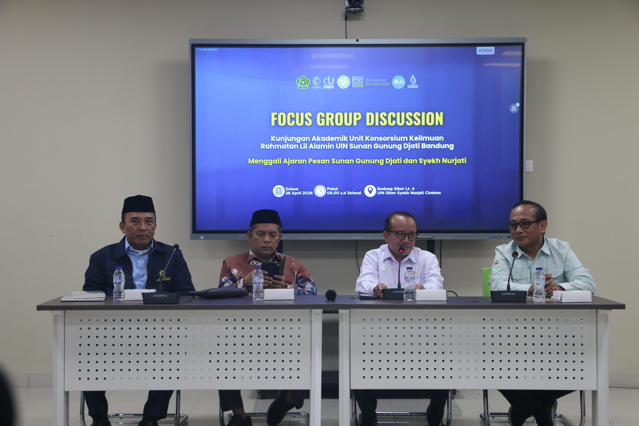 UINSGD.AC.ID (Humas) — UIN Siber Syekh Nurjati Cirebon menggelar Focus Group Discussion (FGD) bertajuk “Menggali Ajaran Pesan Sunan Gunung Djati dan Syekh Nurjati” yang berlangsung di Gedung Siber SBSN Lantai IV, Selasa (28/4/2026). Kegiatan ini merupakan tindak lanjut dari kunjungan akademik Unit Konsorsium Keilmuan Rahmatan Lil Alamin UIN Sunan Gunung Djati Bandung.