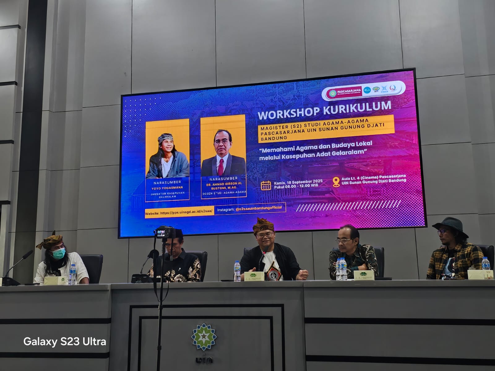 UINSGD.AC.ID (Humas) — Program Studi Magister (S2) Studi Agama-Agama, Pascasarjana UIN Sunan Gunung Djati Bandung, menggelar Workshop Kurikulum bertajuk “Memahami Agama dan Budaya Lokal melalui Kasepuhan Adat Gelaralam” di Aula Lantai 4 (Cinema), Kamis (18/9/2025).